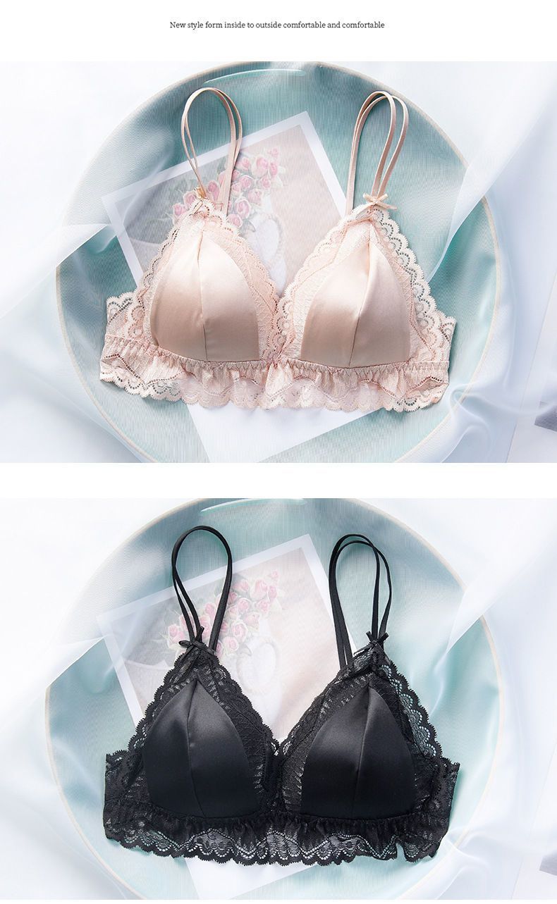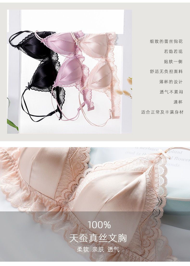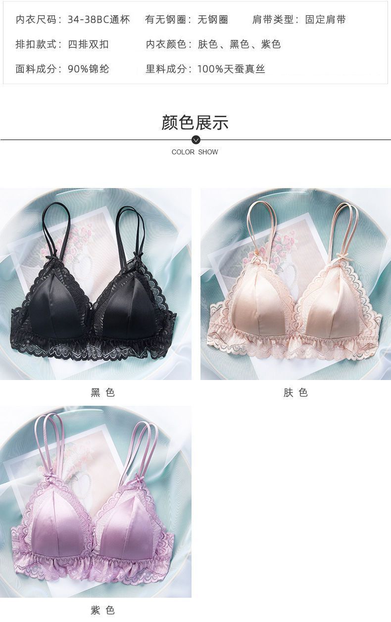 商品名稱(chēng):婷美無(wú)鋼圈天蠶真絲文胸法式性感三角杯內(nèi)衣蕾絲細(xì)帶薄款女士?jī)?nèi)衣