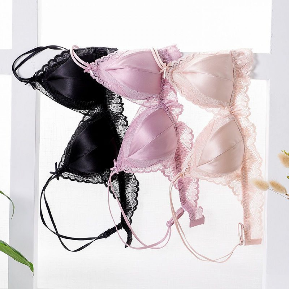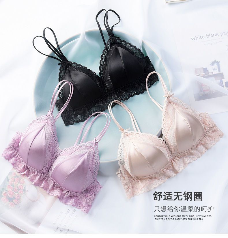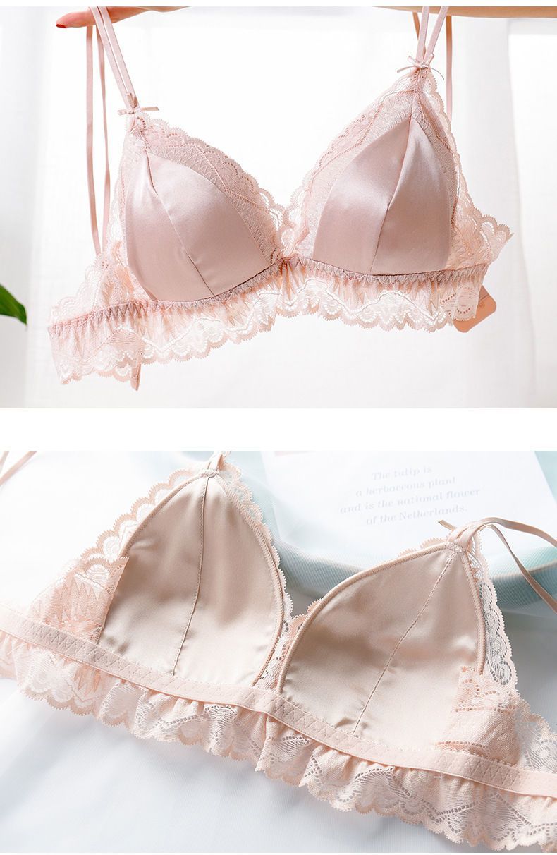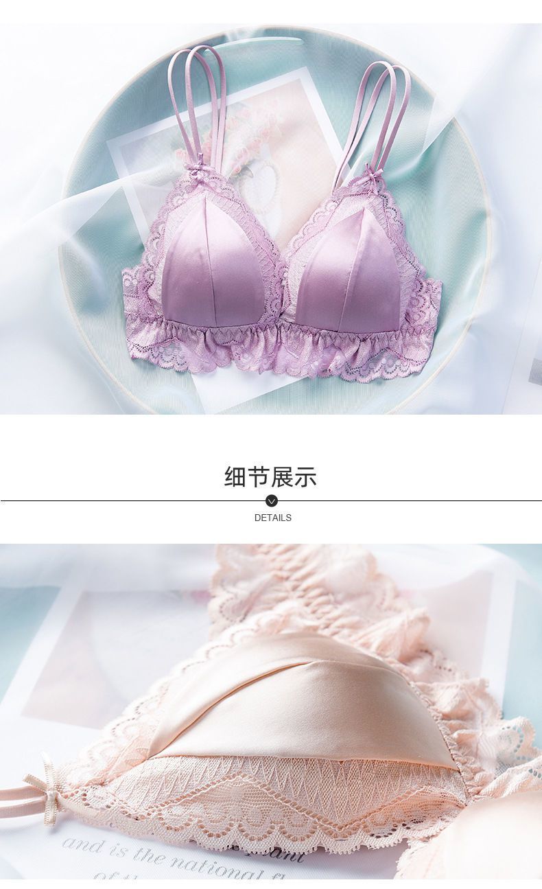商品名稱(chēng):婷美無(wú)鋼圈天蠶真絲文胸法式性感三角杯內(nèi)衣蕾絲細(xì)帶薄款女士?jī)?nèi)衣