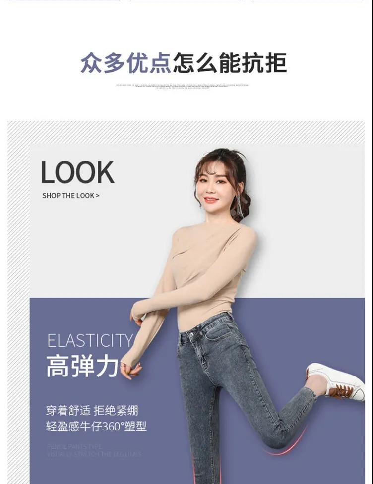 商品名稱:皮爾卡丹高腰牛仔褲女夏2020新款韓版顯瘦彈力小腳鉛筆長(zhǎng)褲子