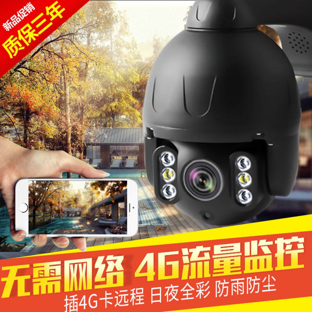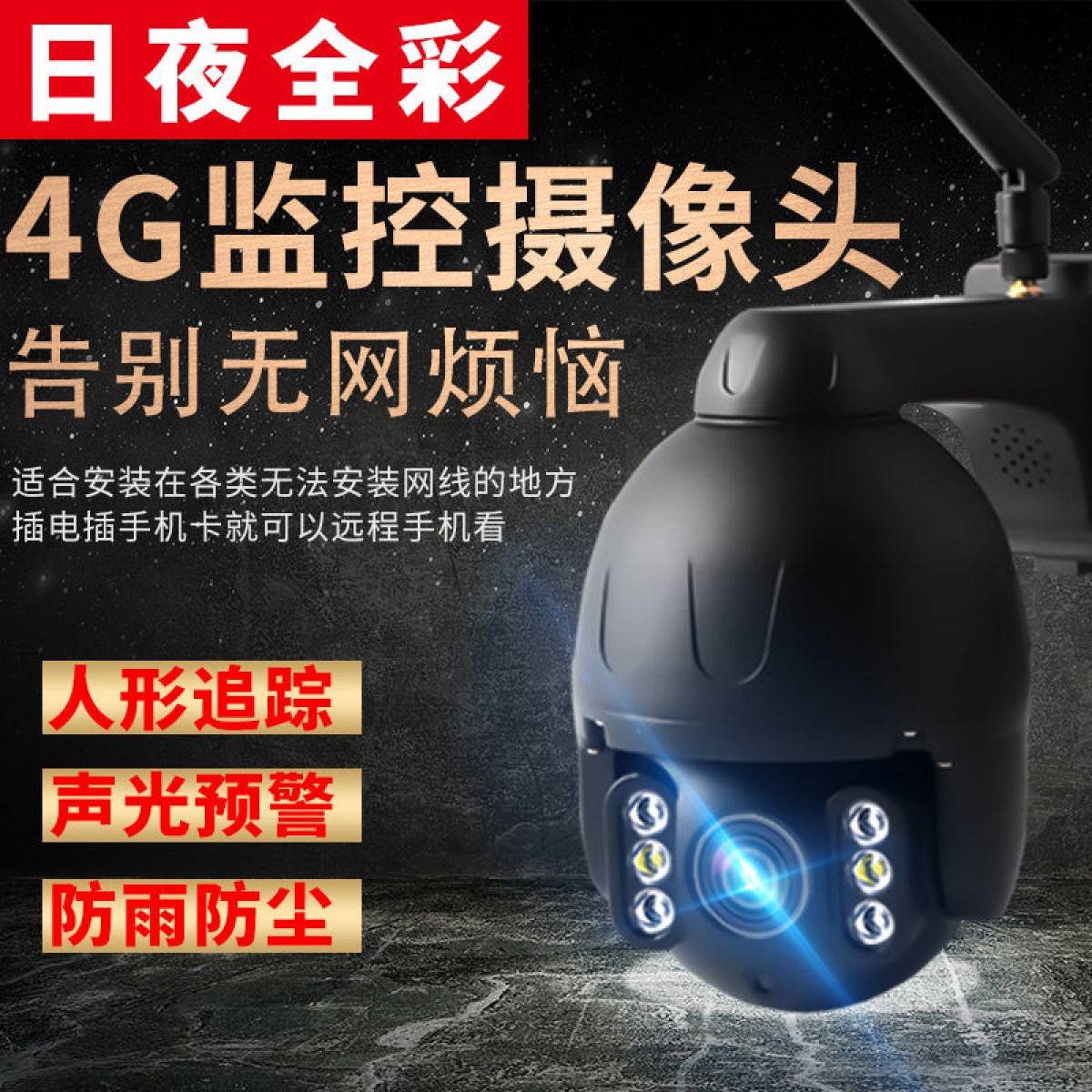 4G室外監(jiān)控攝像頭插手機(jī)卡無線無網(wǎng)流量遠(yuǎn)程家用超高清夜視360度