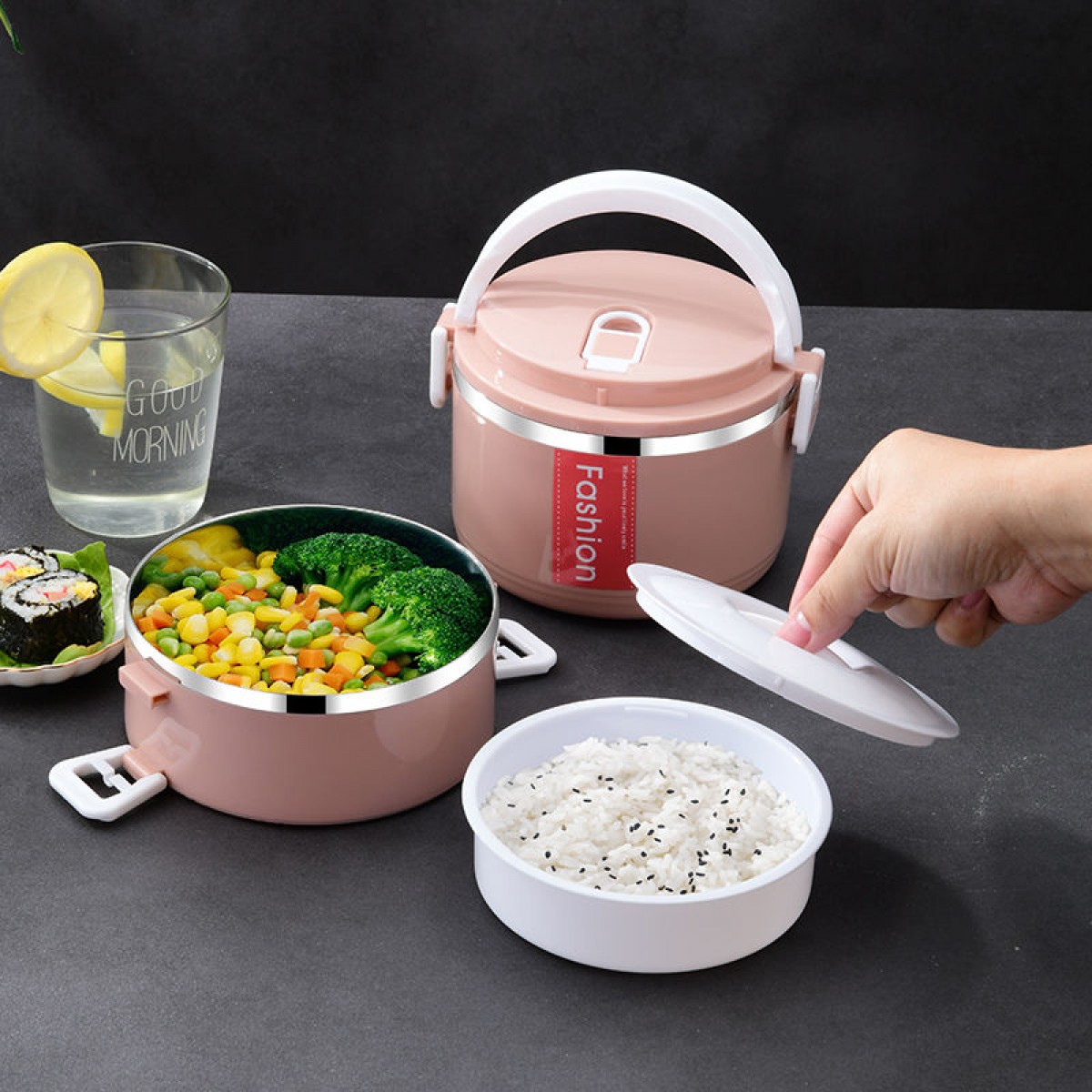 商品名稱:加高不銹鋼飯盒顯示成人上班族大容量多層便當保溫桶分格單層四層