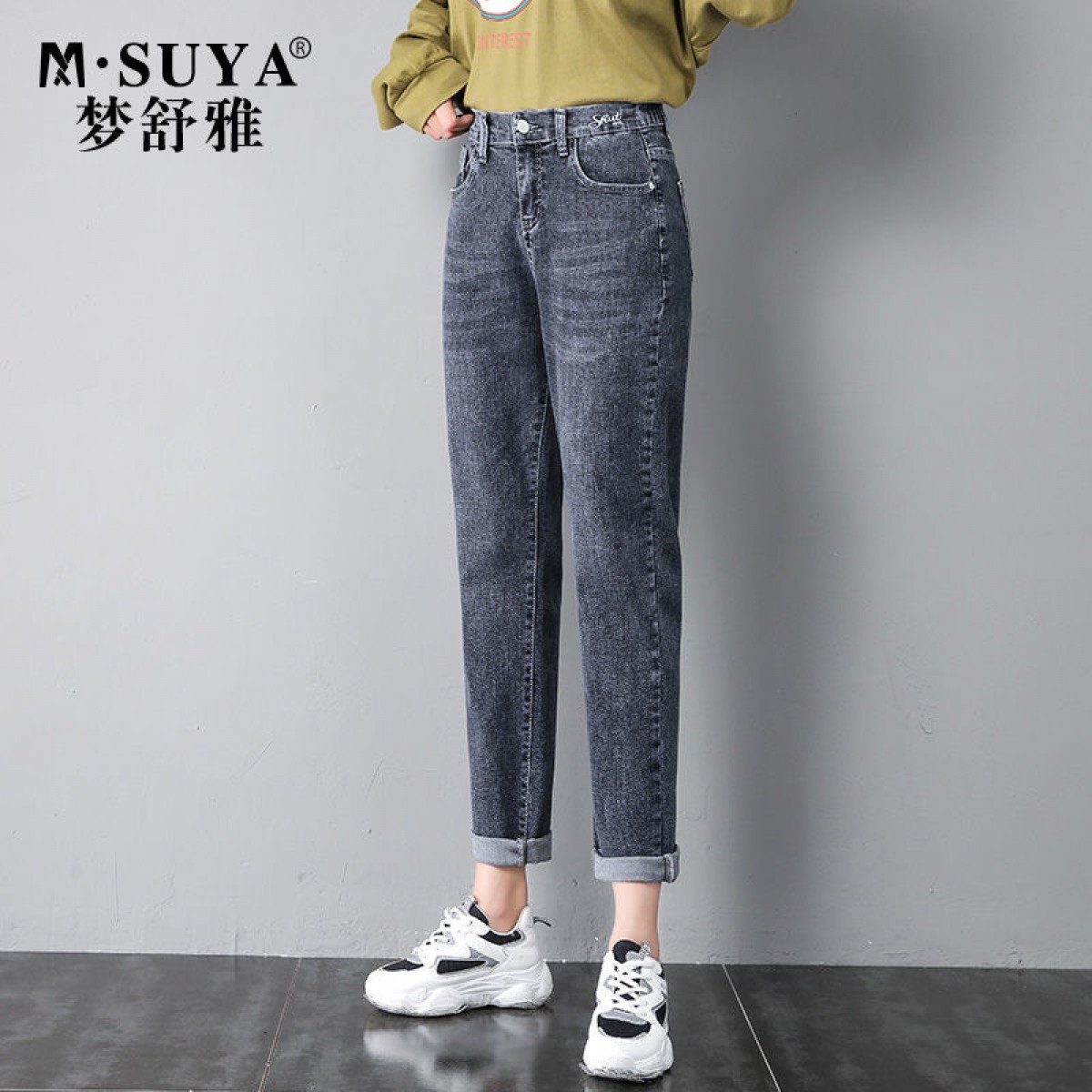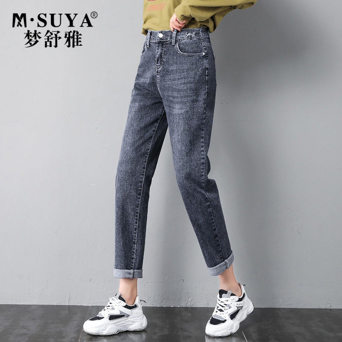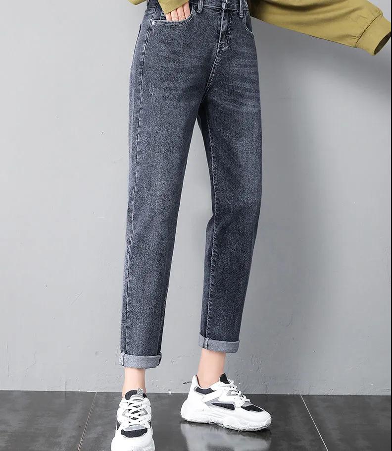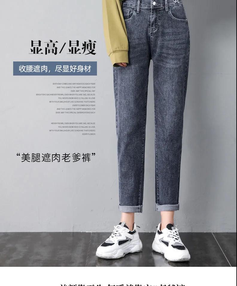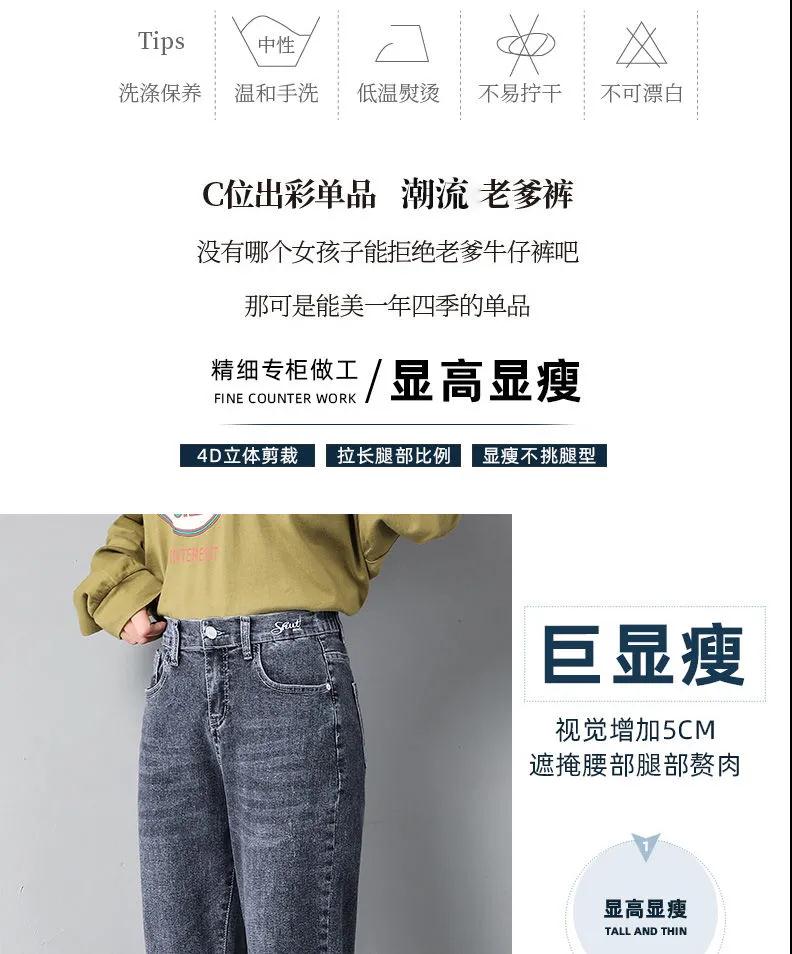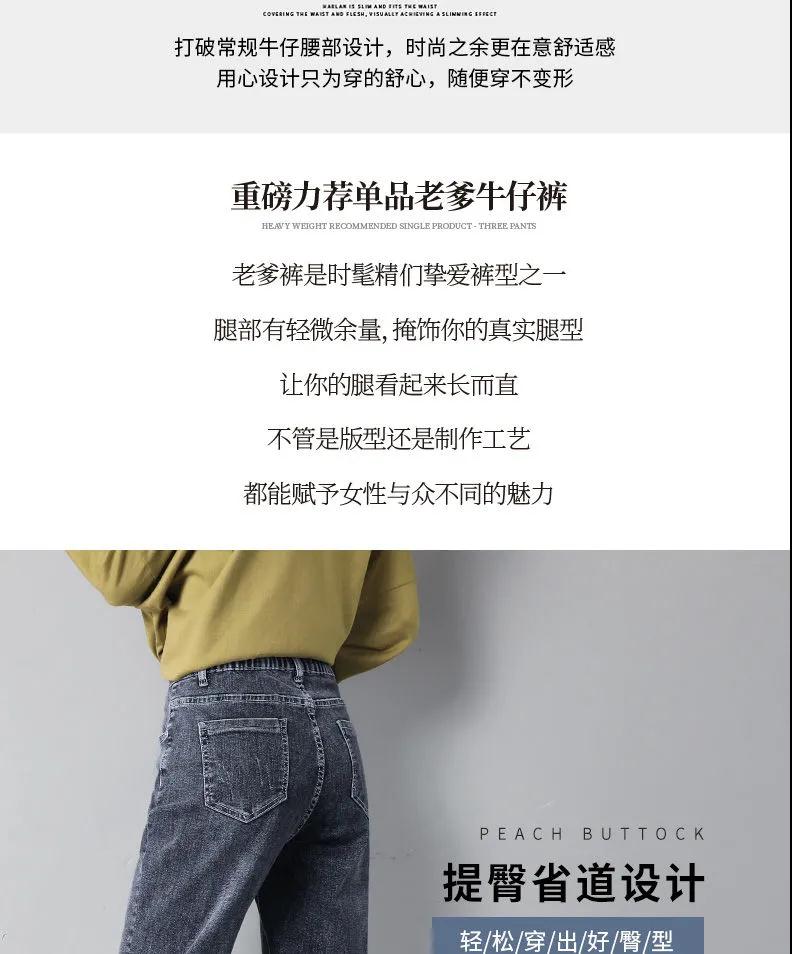 商品名稱:2020年新款秋季女褲顯瘦老爹褲高腰蘿卜哈倫牛仔褲寬松女褲