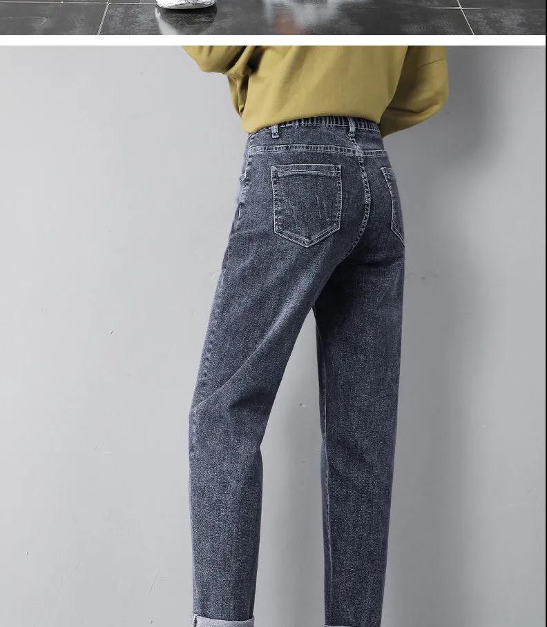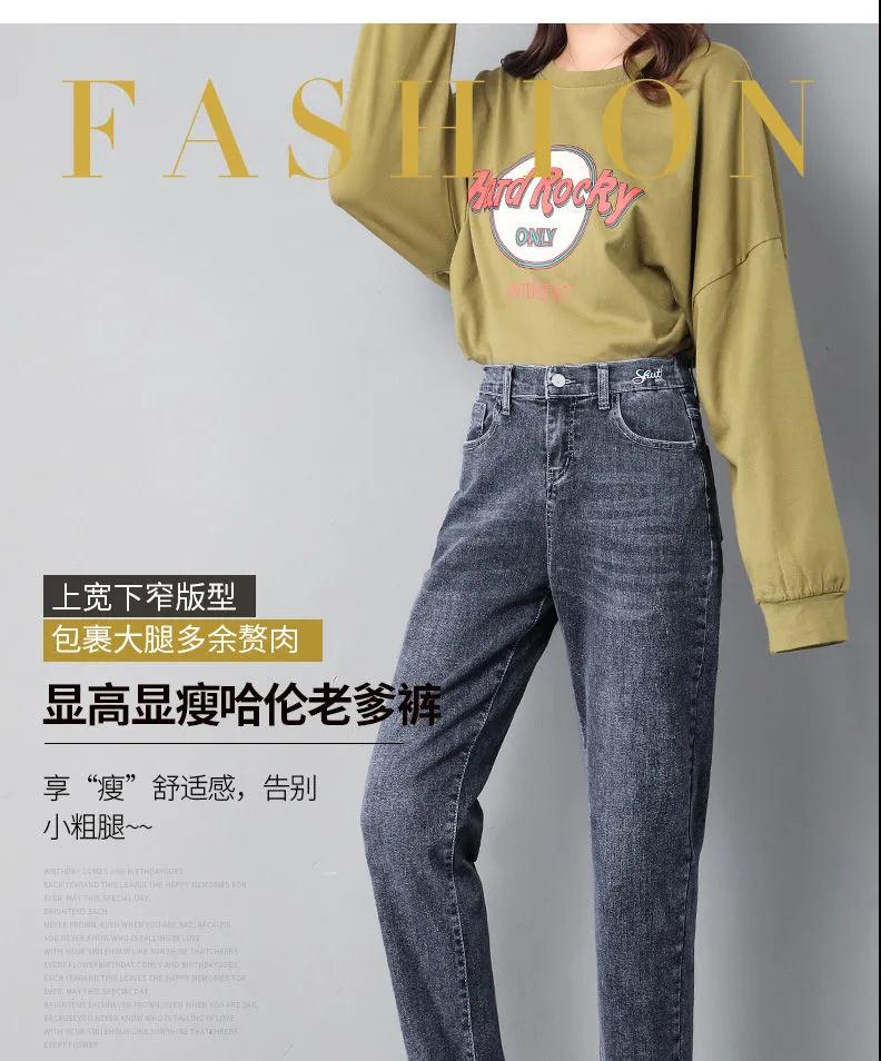 2020年新款秋季女褲顯瘦老爹褲高腰蘿卜哈倫牛仔褲寬松女褲