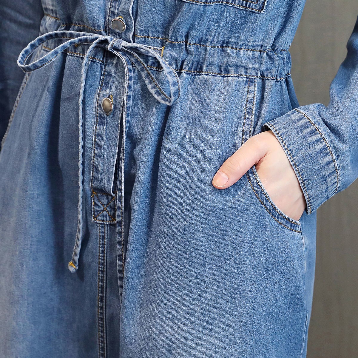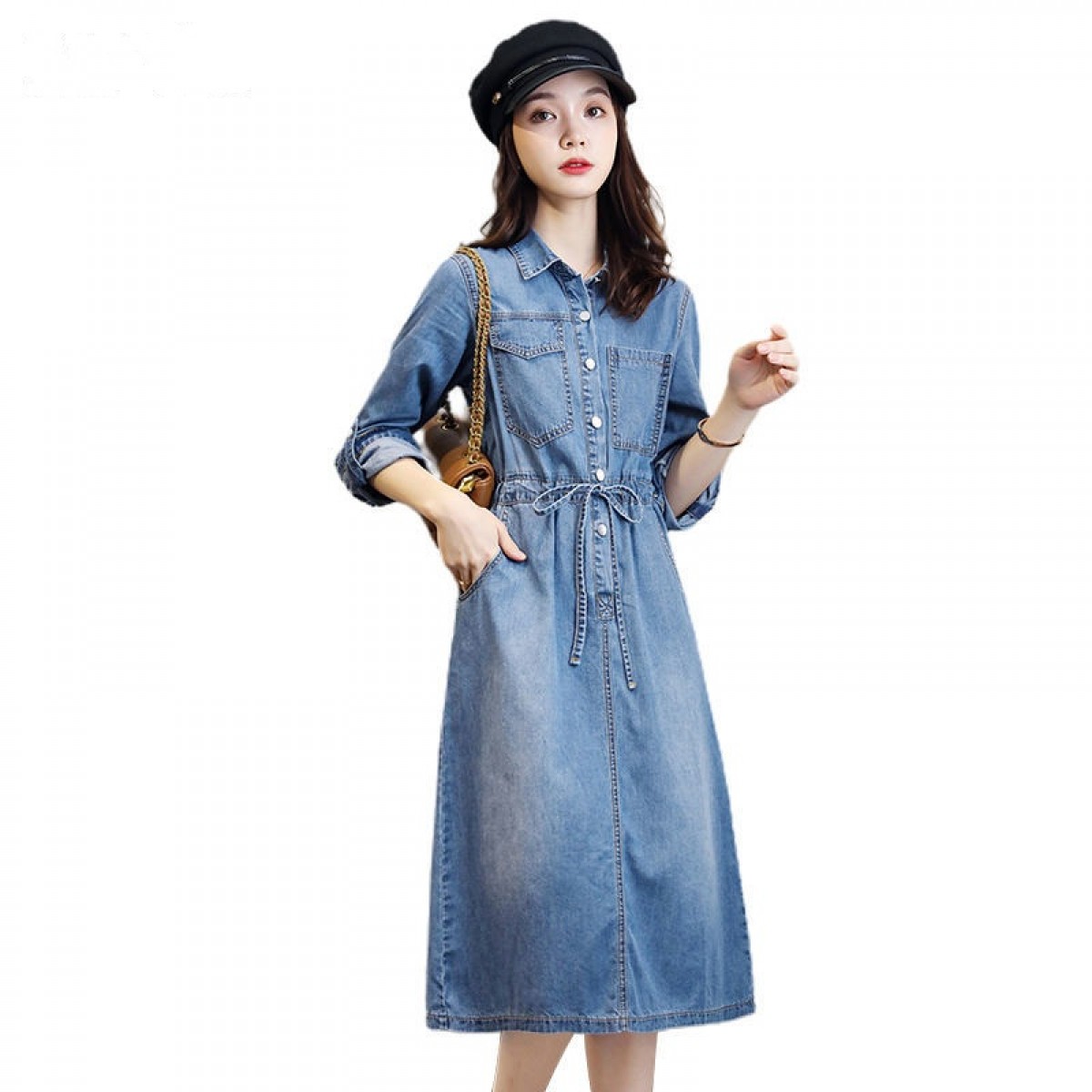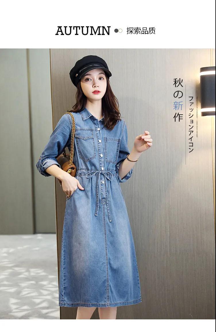 商品名稱:牛仔裙連衣裙2020秋季新款休閑口袋牛仔收腰短袖連衣裙女