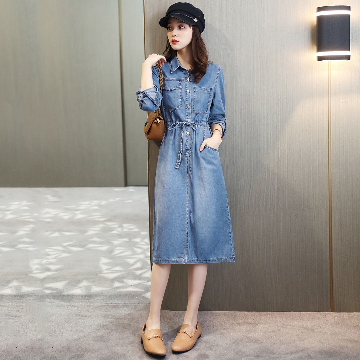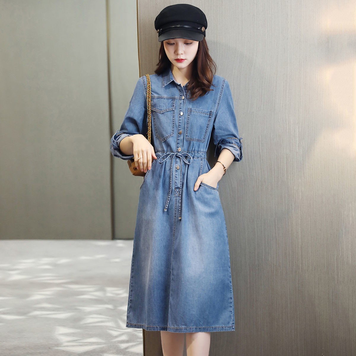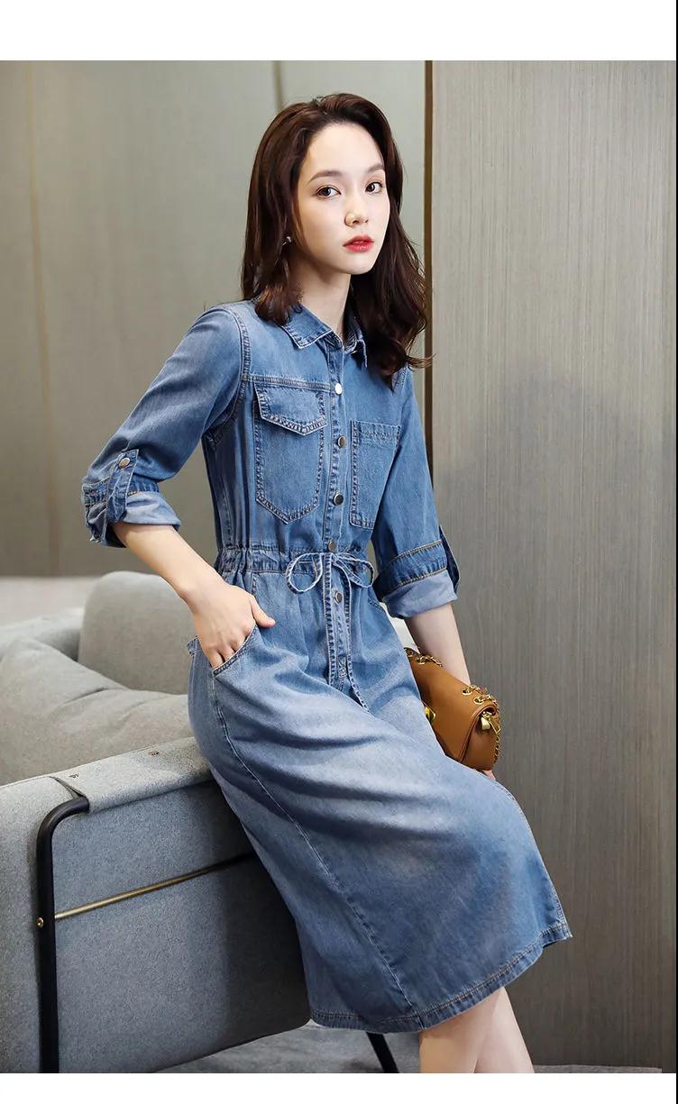 商品名稱:牛仔裙連衣裙2020秋季新款休閑口袋牛仔收腰短袖連衣裙女