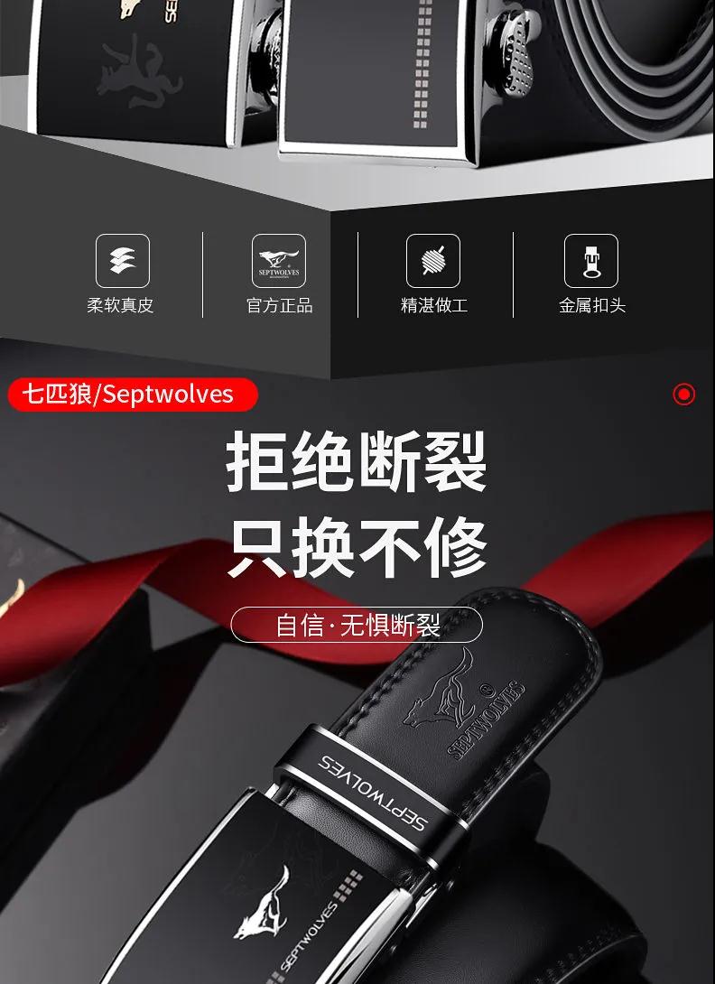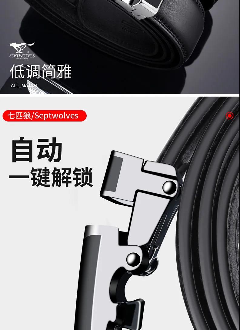 【七匹狼】皮帶男真皮自動扣男士韓版潮流牛皮褲腰帶社會小伙新款