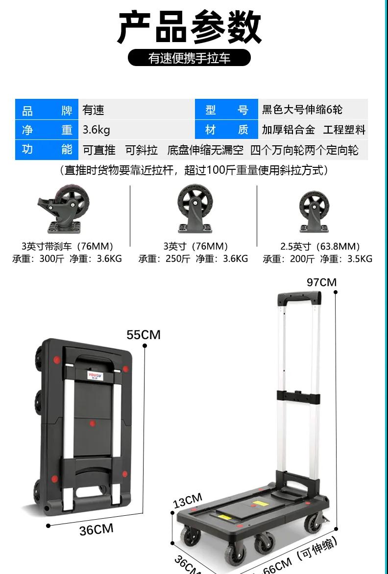商品名稱:手拉車?yán)瓧U車家用小拖車折疊便攜小推車?yán)浭滞栖囏洶徇\(yùn)車行李車