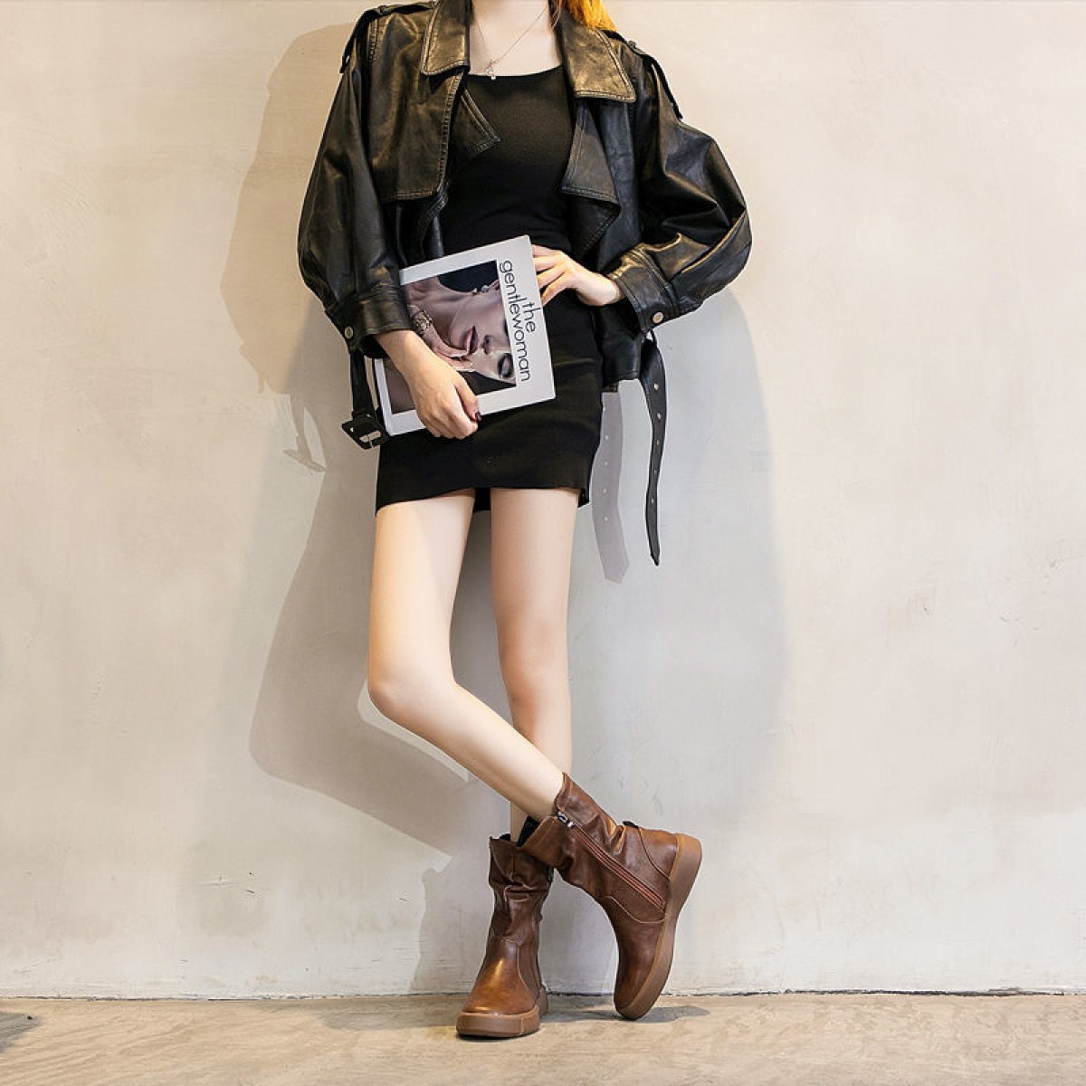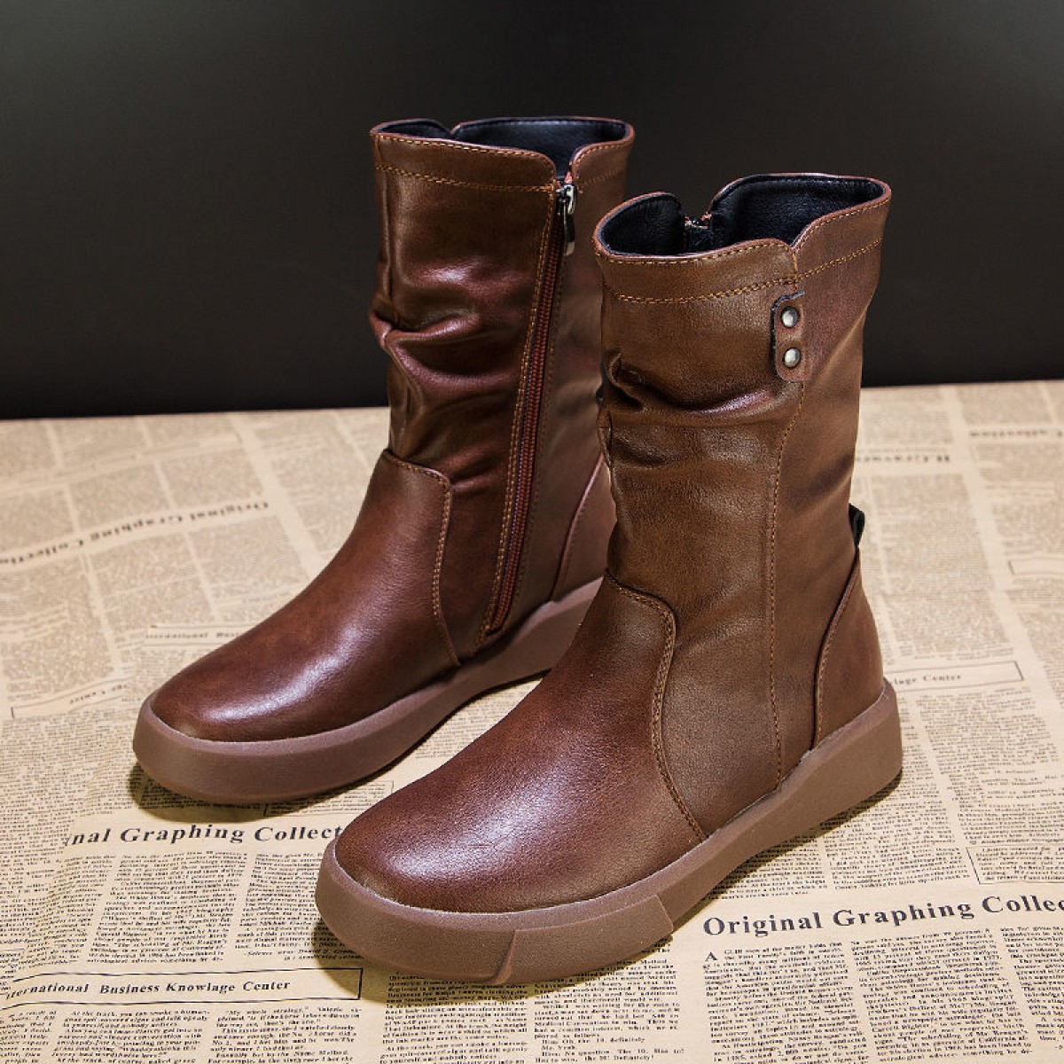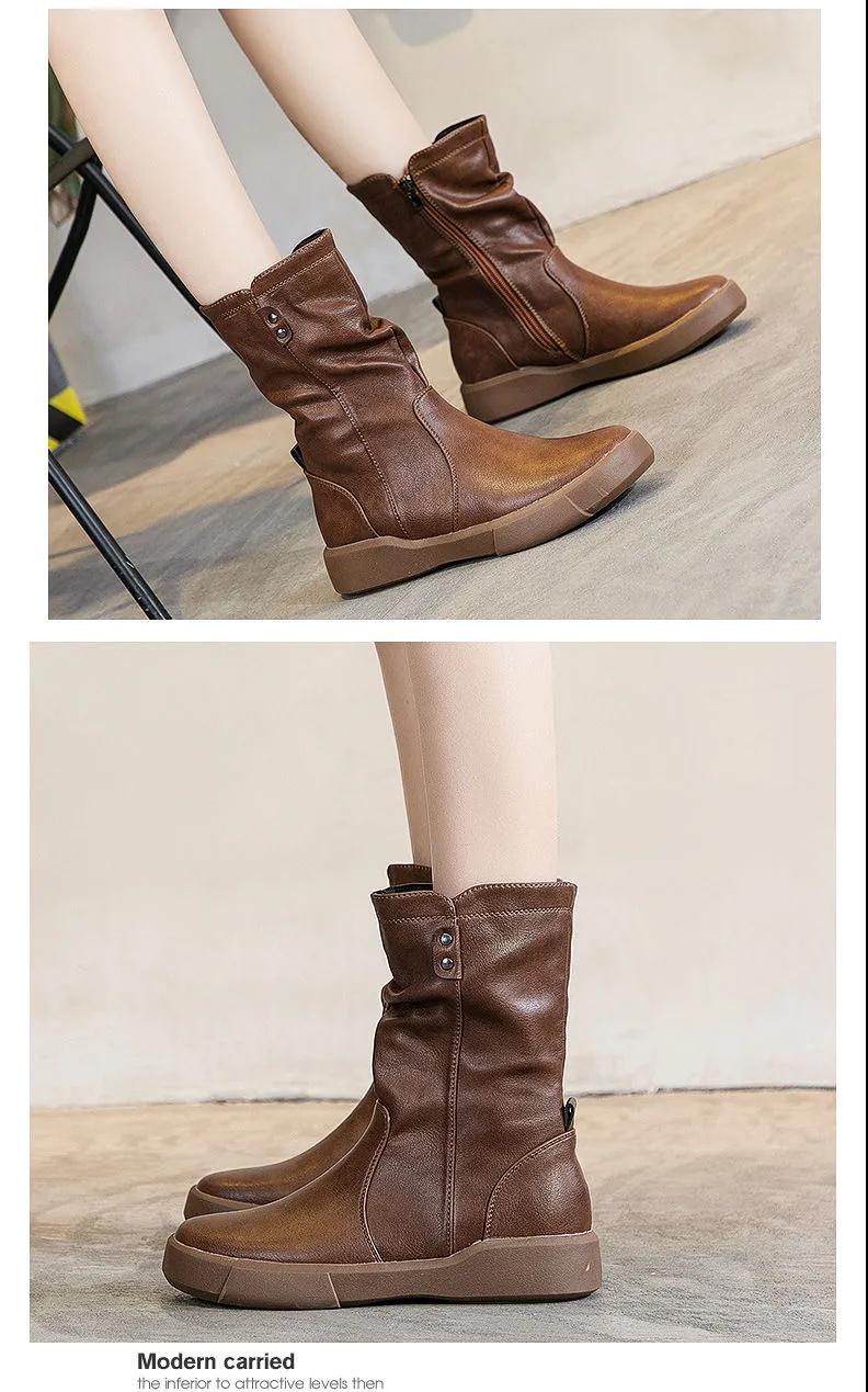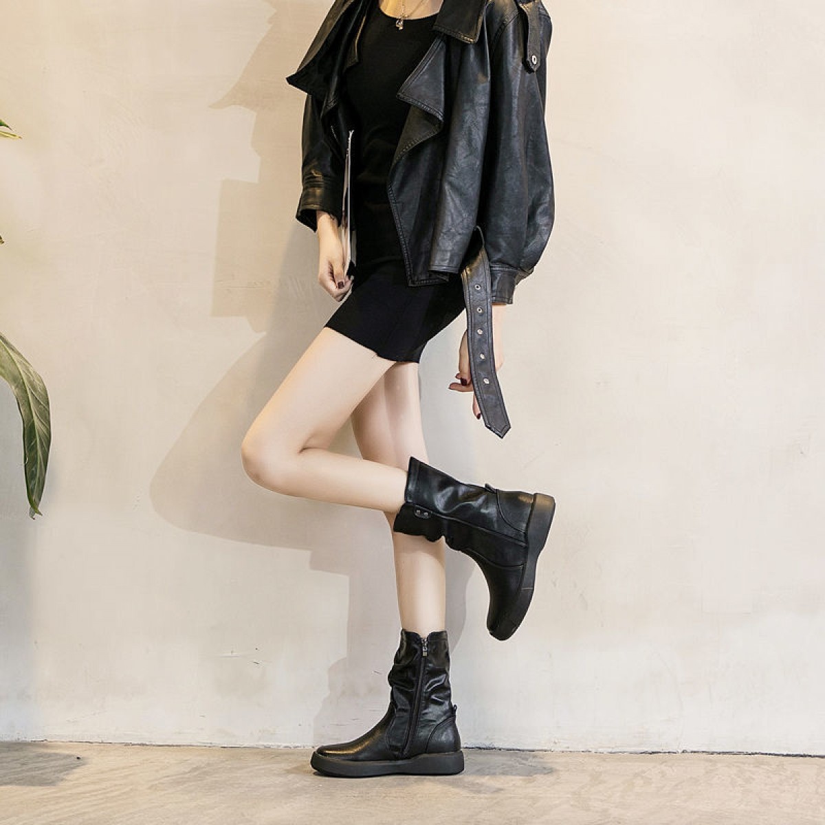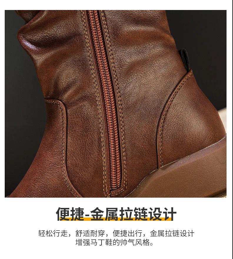 商品名稱:2020秋季新款馬丁靴女英倫風(fēng)平底加絨瘦瘦靴百搭休閑中筒靴子女冬