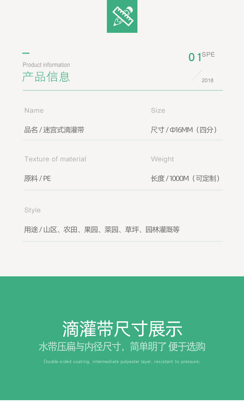 商品名稱(chēng):16迷宮式滴灌帶管農(nóng)用滴水管主管自動(dòng)灌溉設(shè)備澆地水帶果園大棚