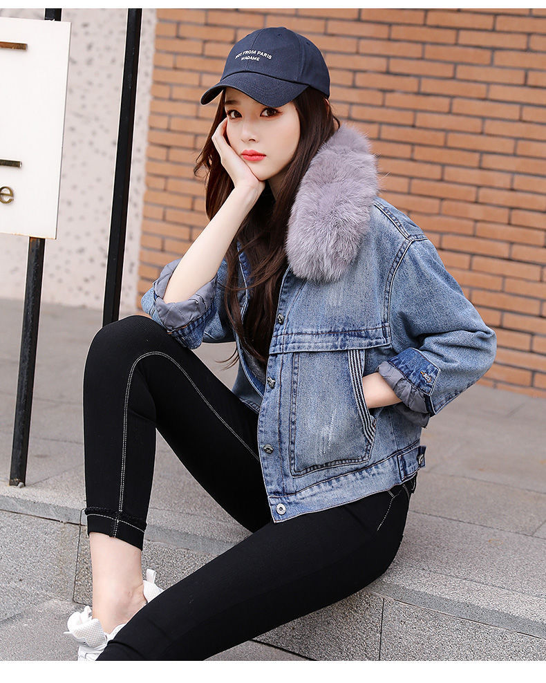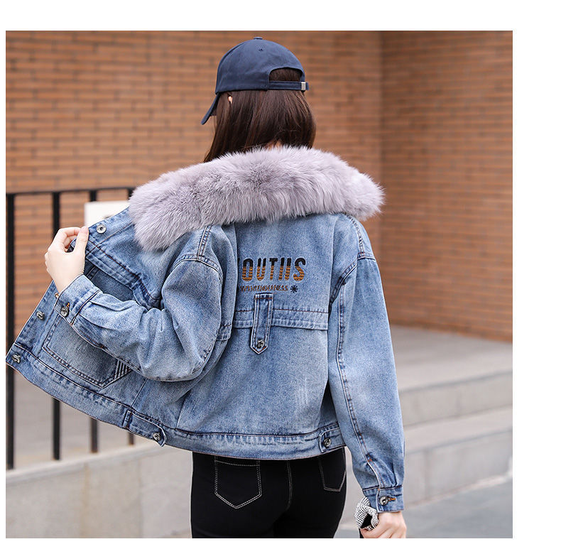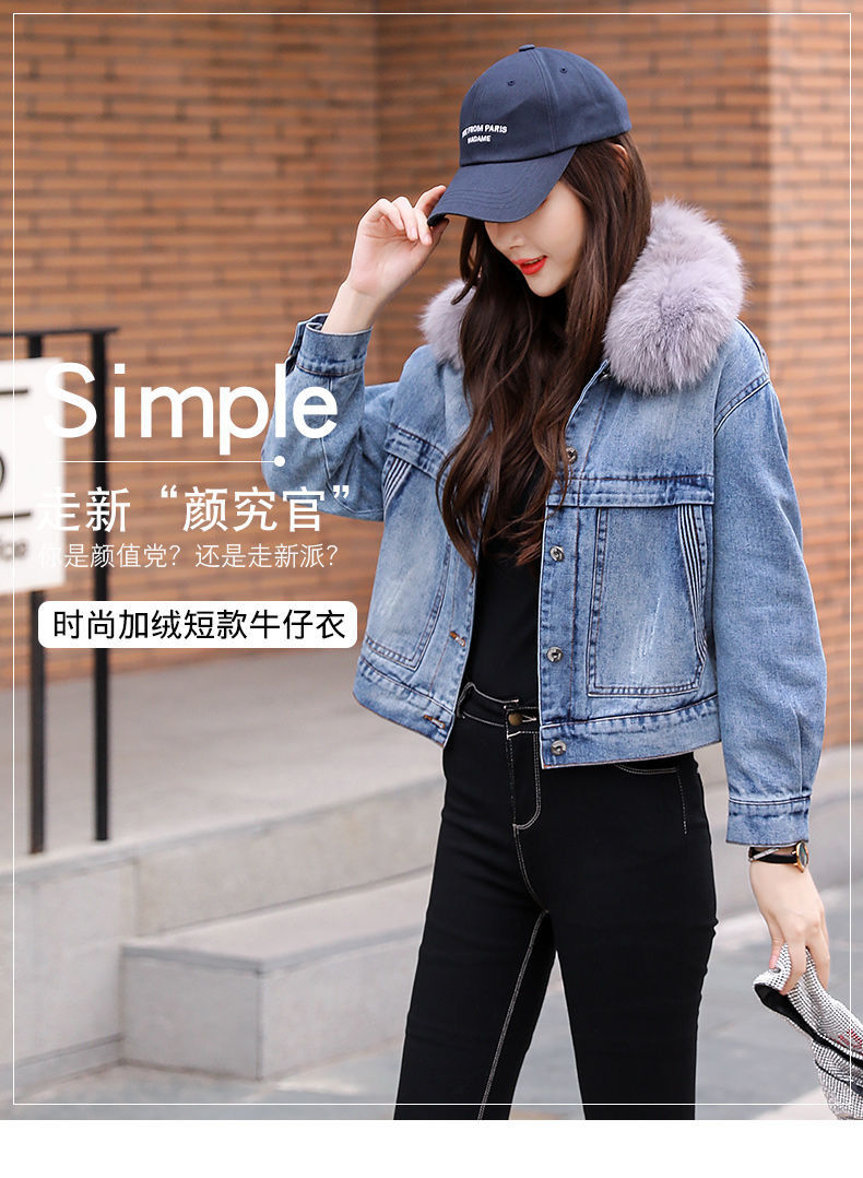 商品名稱:2020新款韓版加厚牛仔外套女短款秋冬bf小個(gè)子加絨保暖棉衣