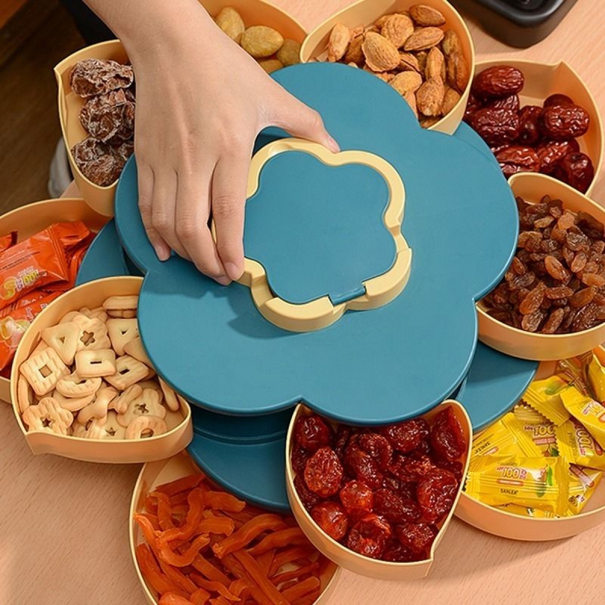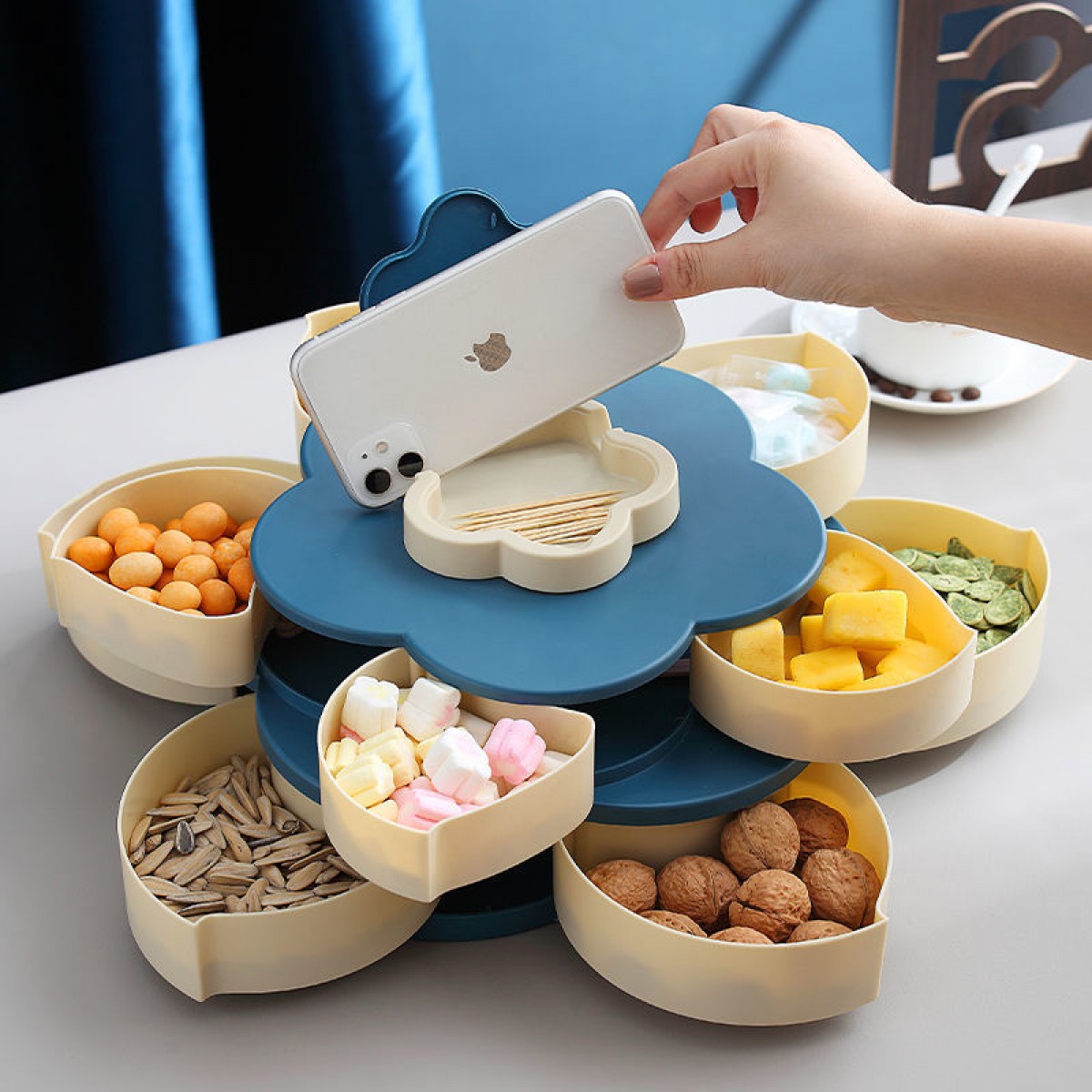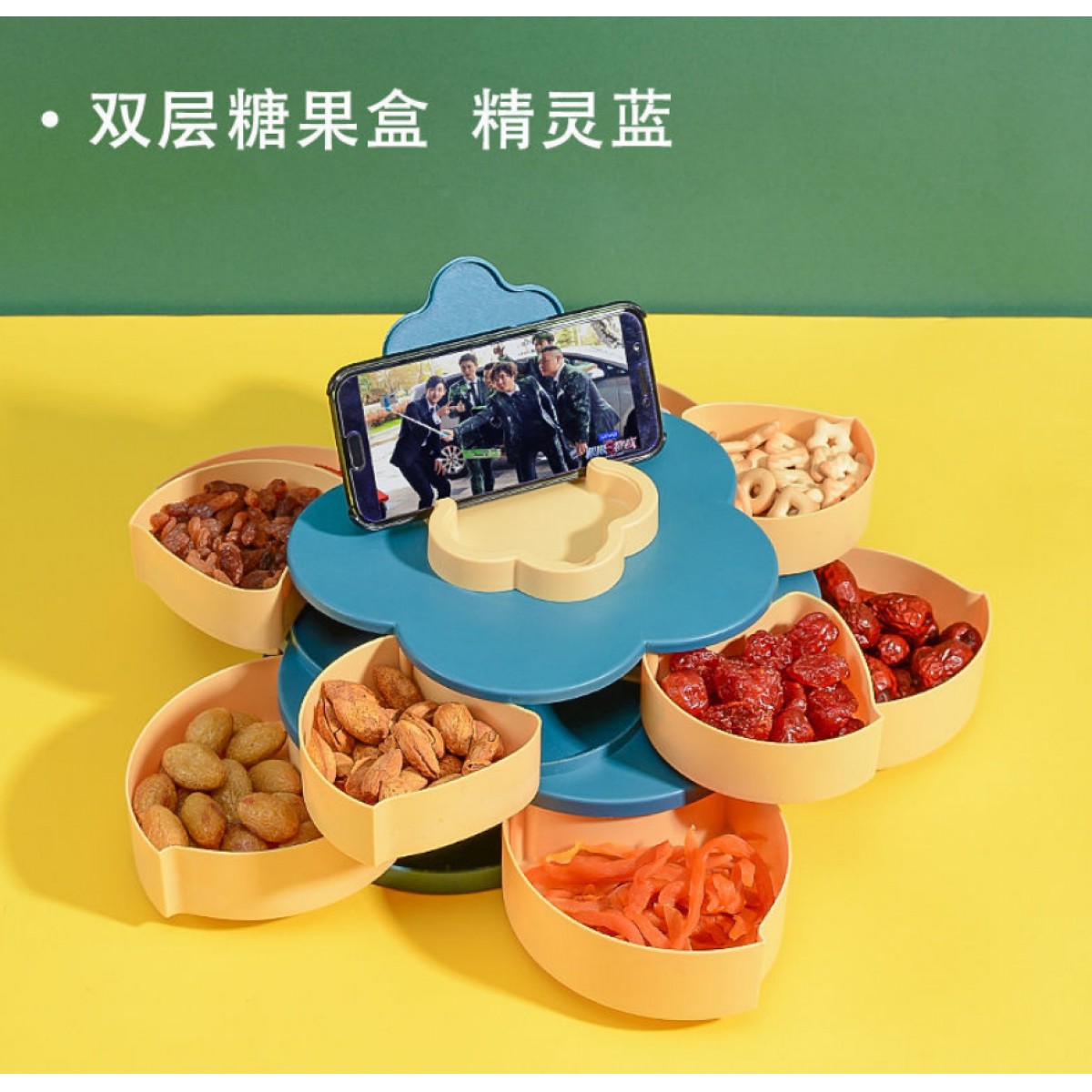 糖果盒旋轉(zhuǎn)花朵客廳家用干果堅果零食盒帶蓋分格茶幾果盤多格果盒