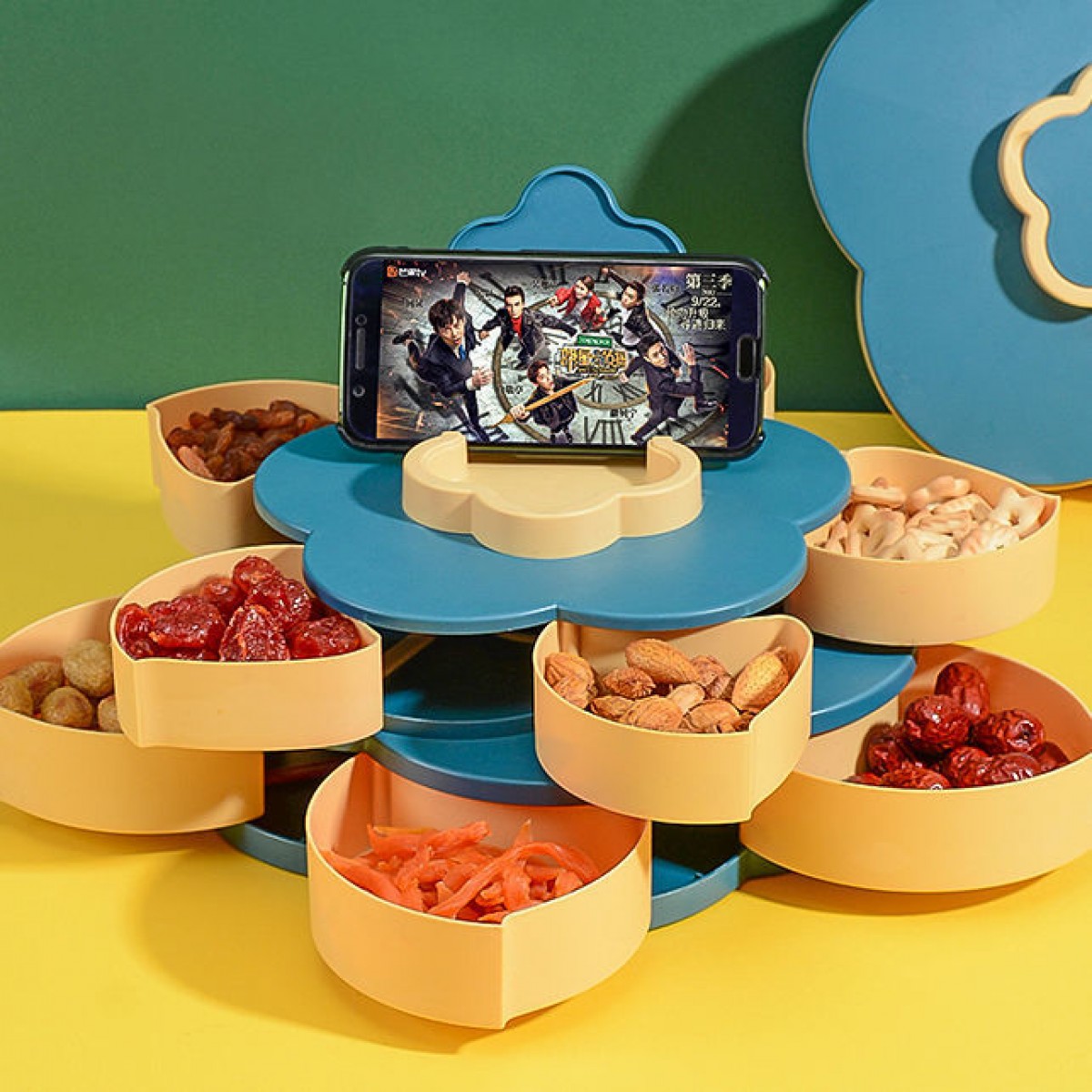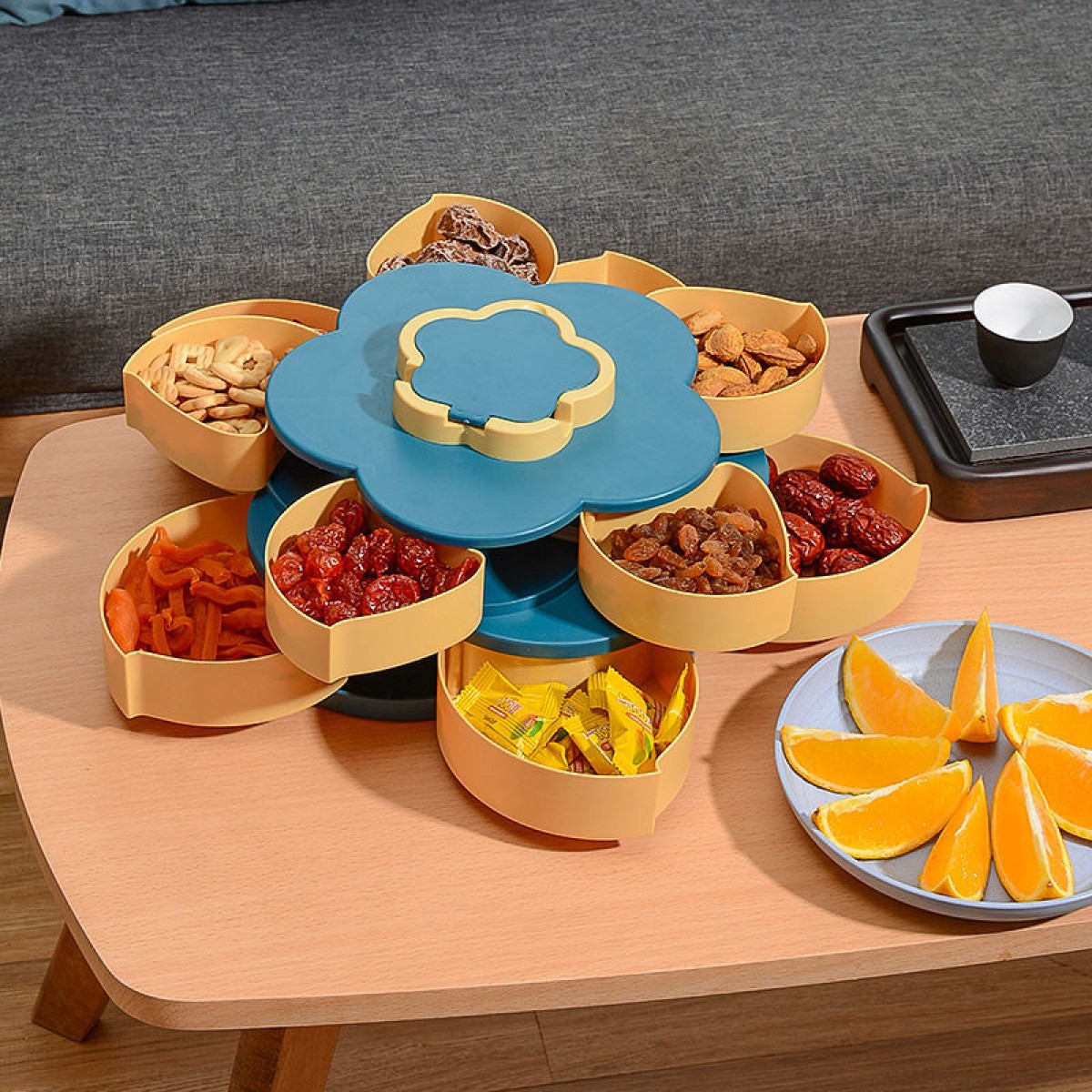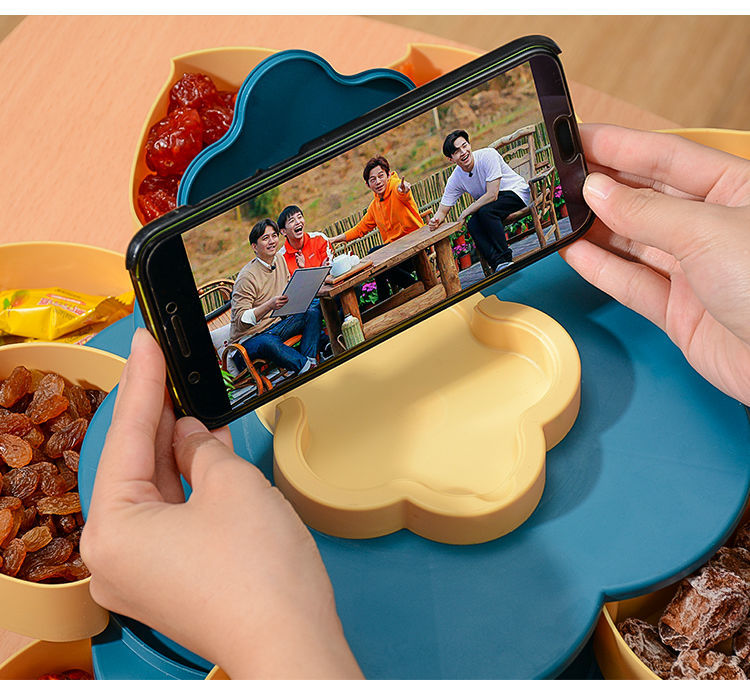 糖果盒旋轉(zhuǎn)花朵客廳家用干果堅果零食盒帶蓋分格茶幾果盤多格果盒