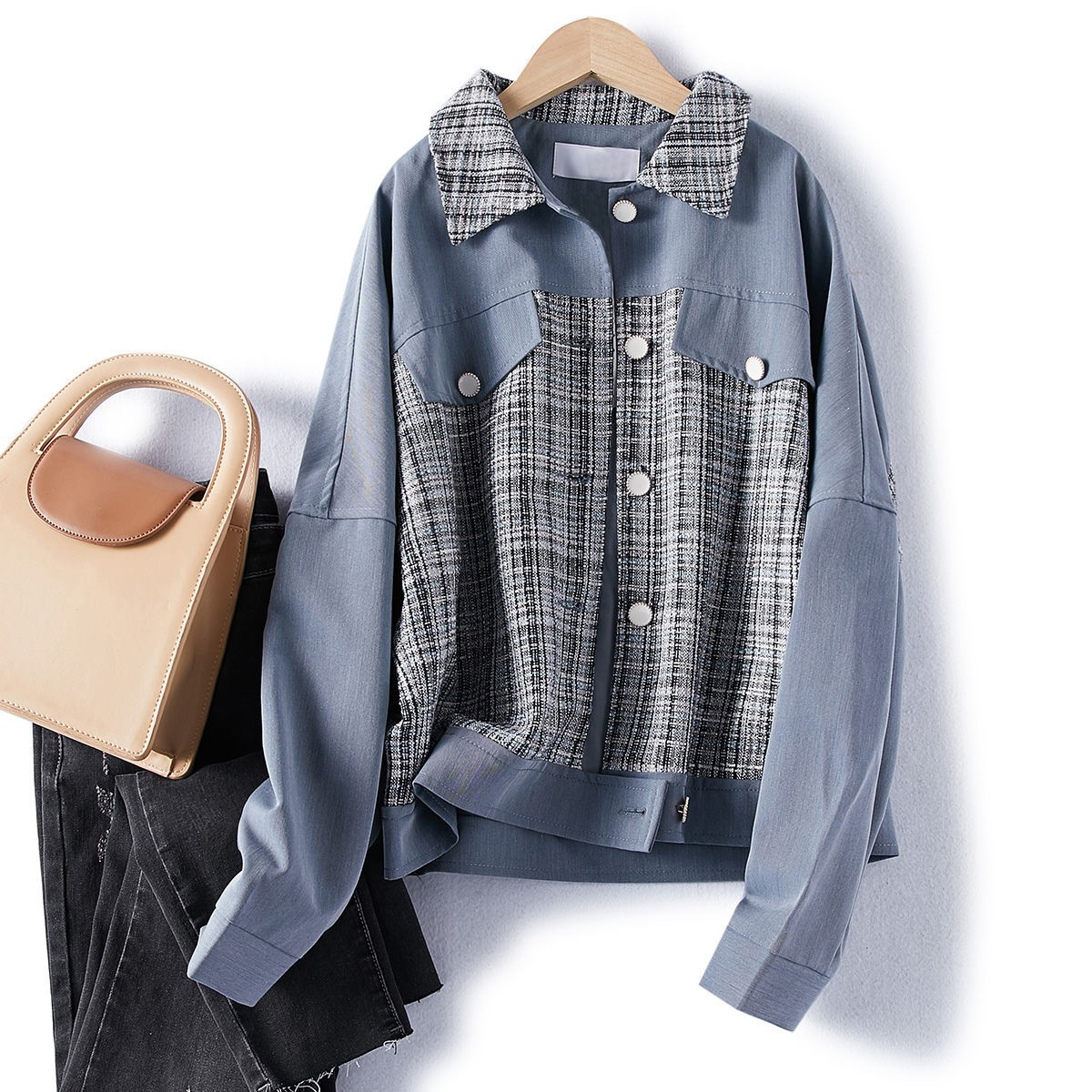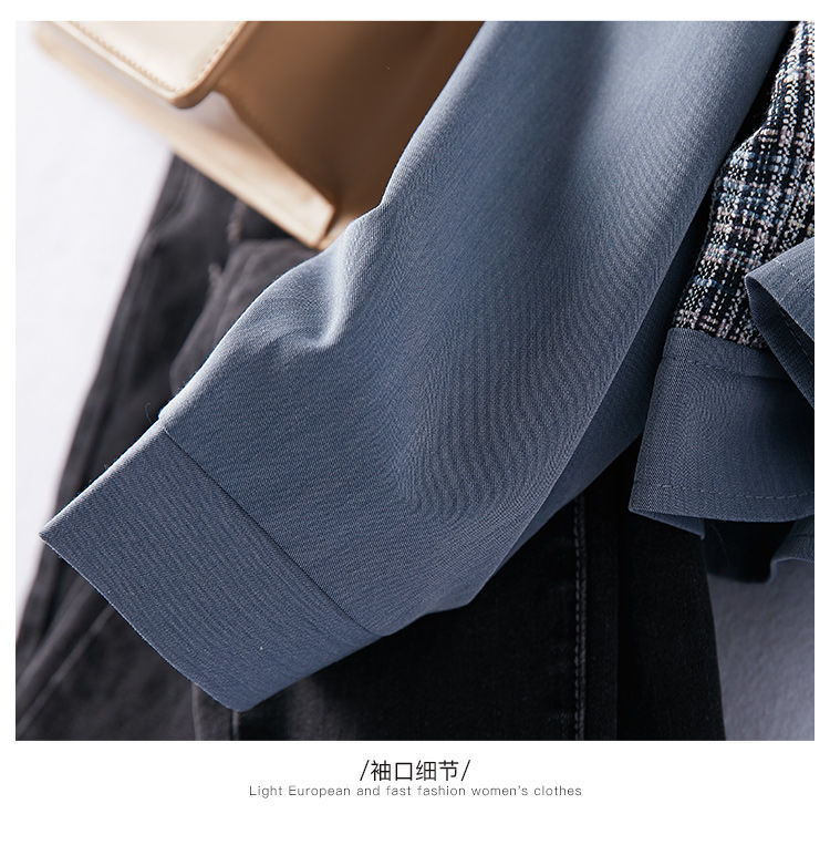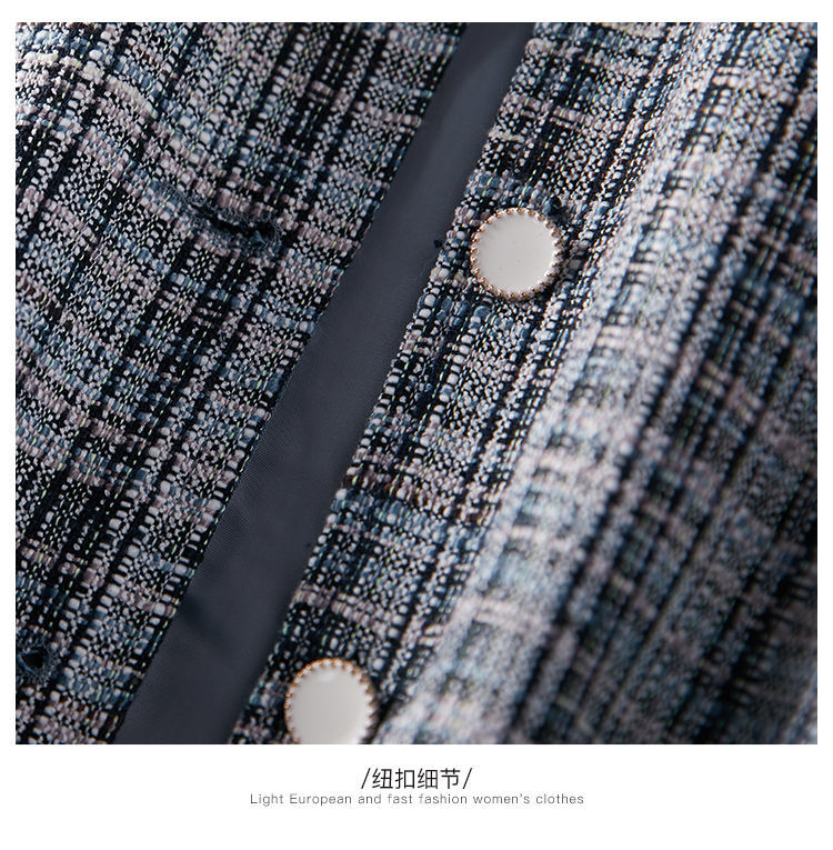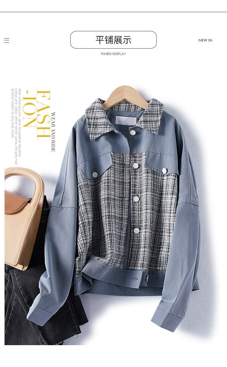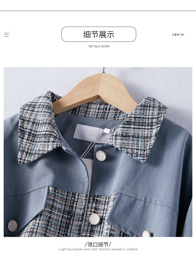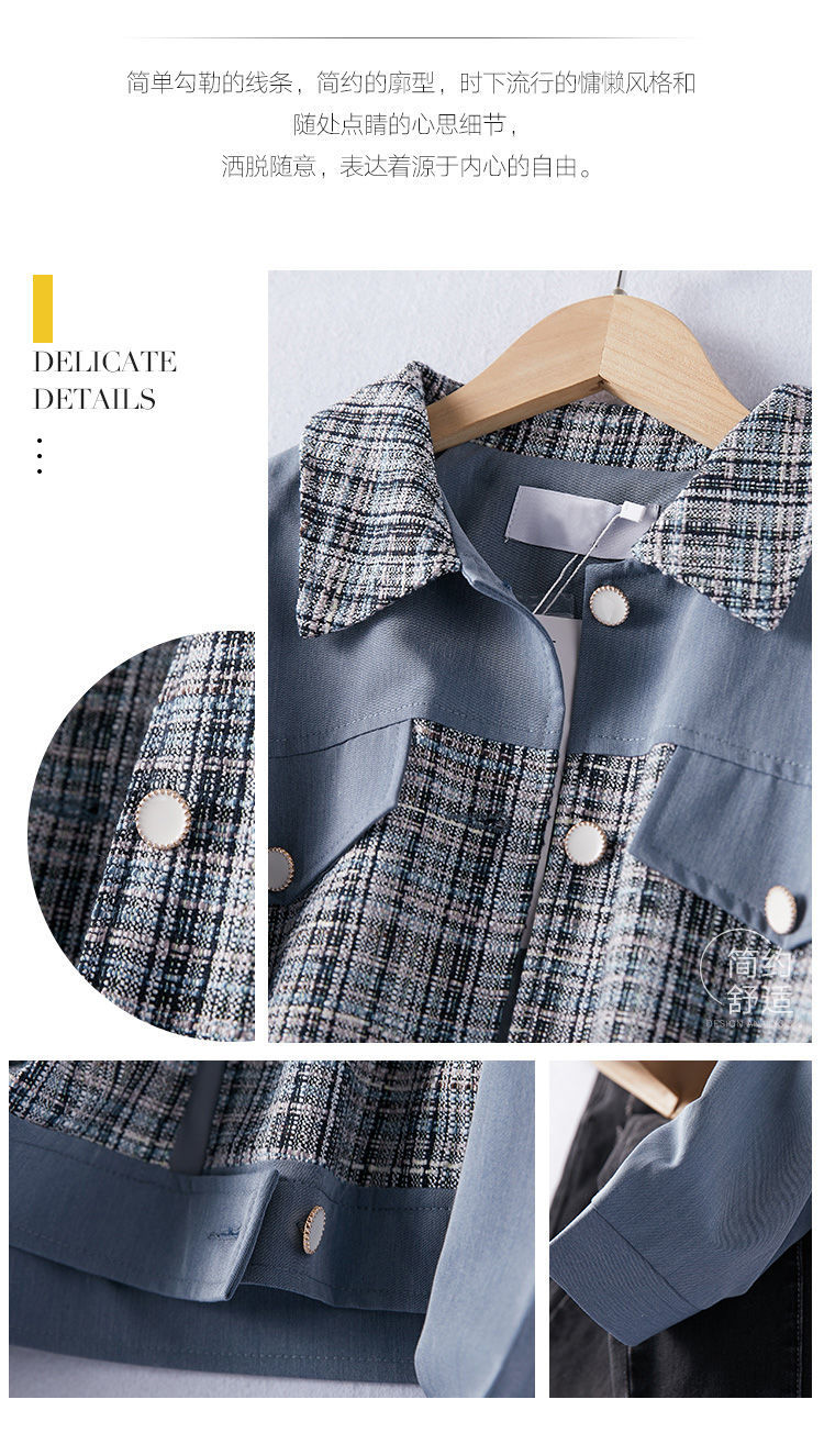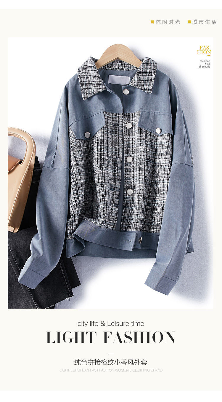商品名稱:2021年春季新款女款時尚簡約百搭顯瘦純色拼接格紋小香風(fēng)外套