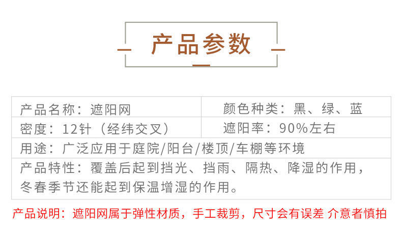 商品名稱:遮陽網(wǎng)批發(fā)遮陰網(wǎng)庶陽網(wǎng)戶外養(yǎng)殖庭院陽臺隔熱加密加厚防曬網(wǎng)定制