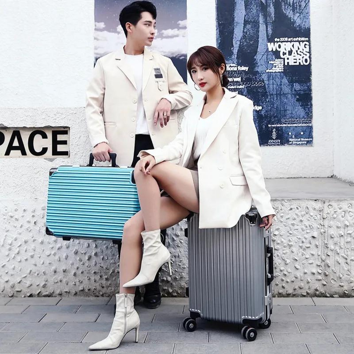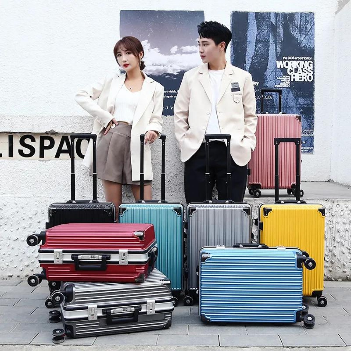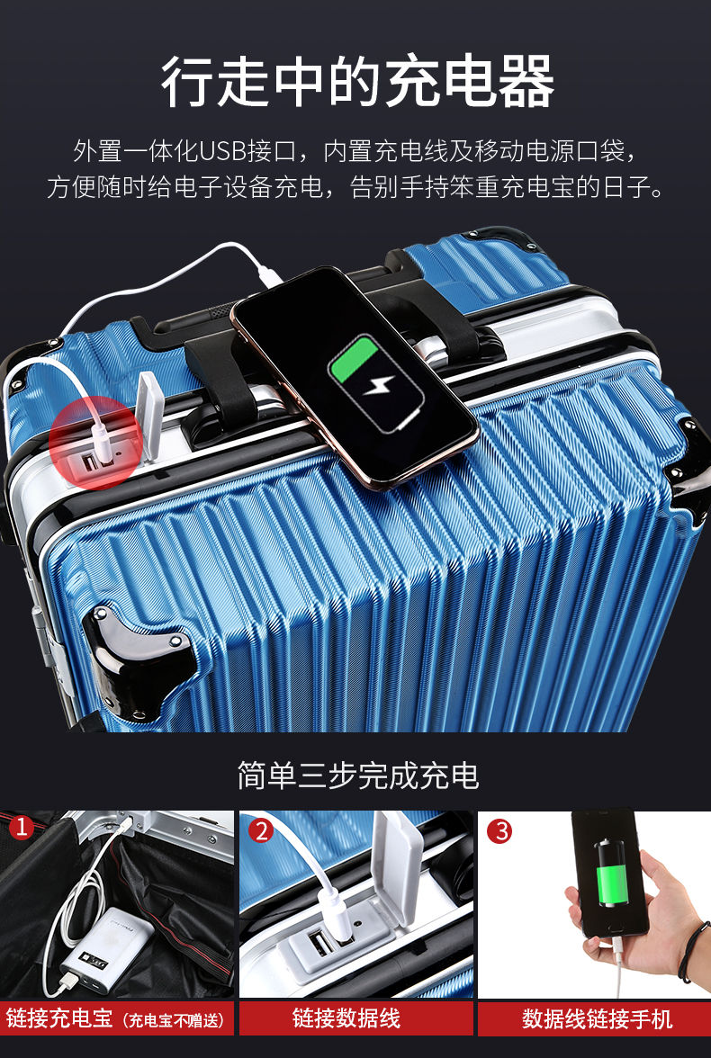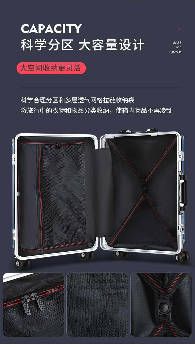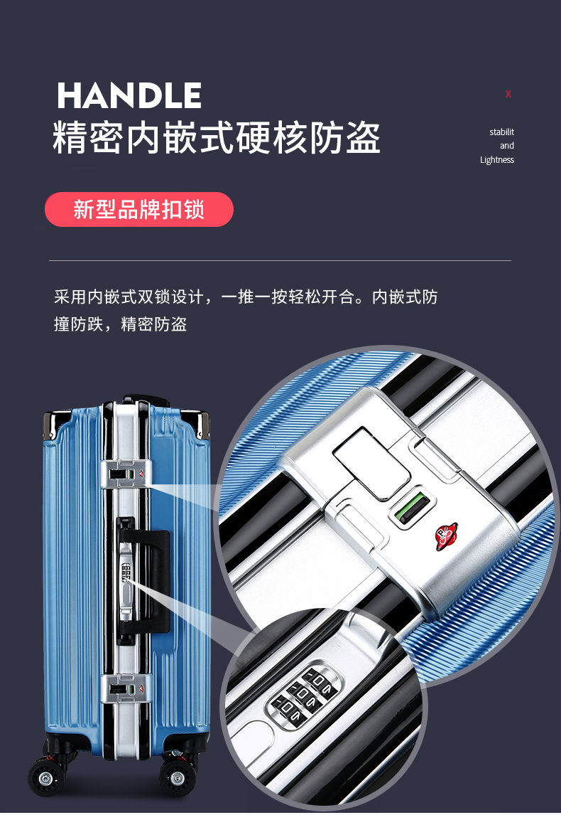 商品名稱:袋鼠行李箱男女學(xué)生韓版密碼箱旅行箱萬向輪皮箱大容量鋁框拉桿箱