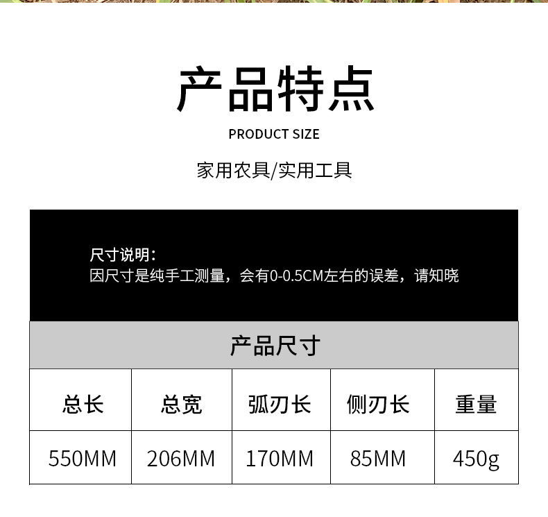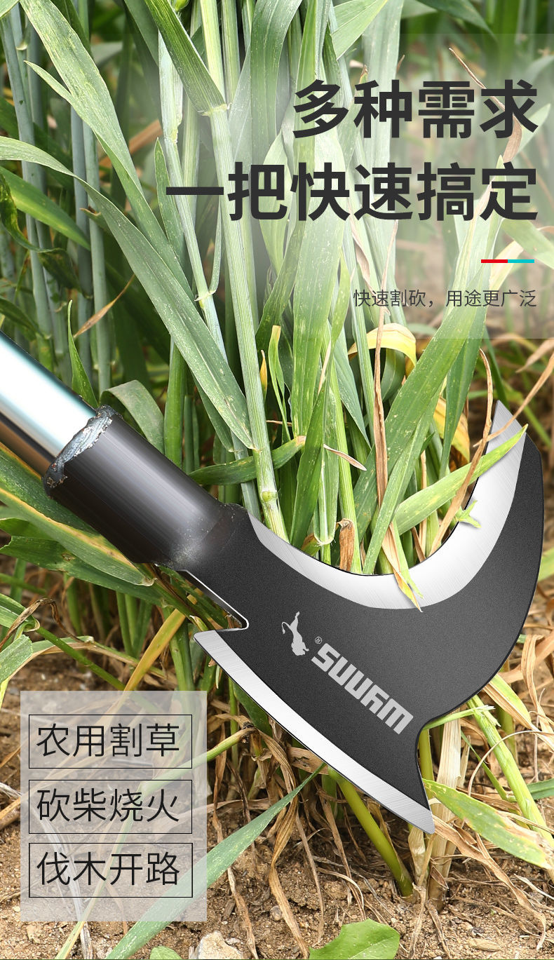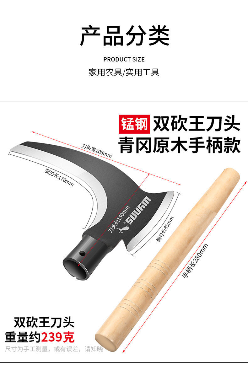 商品名稱:高錳鋼雙砍鐮刀斧頭砍柴砍樹割草彎刀農(nóng)用工具大全除草神器