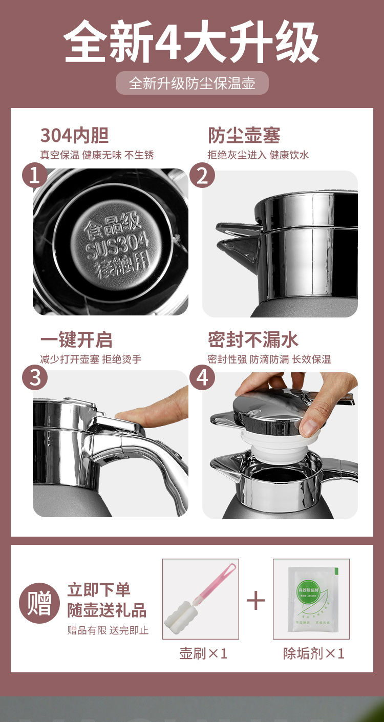 商品名稱:304加厚不銹鋼保溫壺家用開熱水瓶大容量羅馬保溫瓶暖水壺