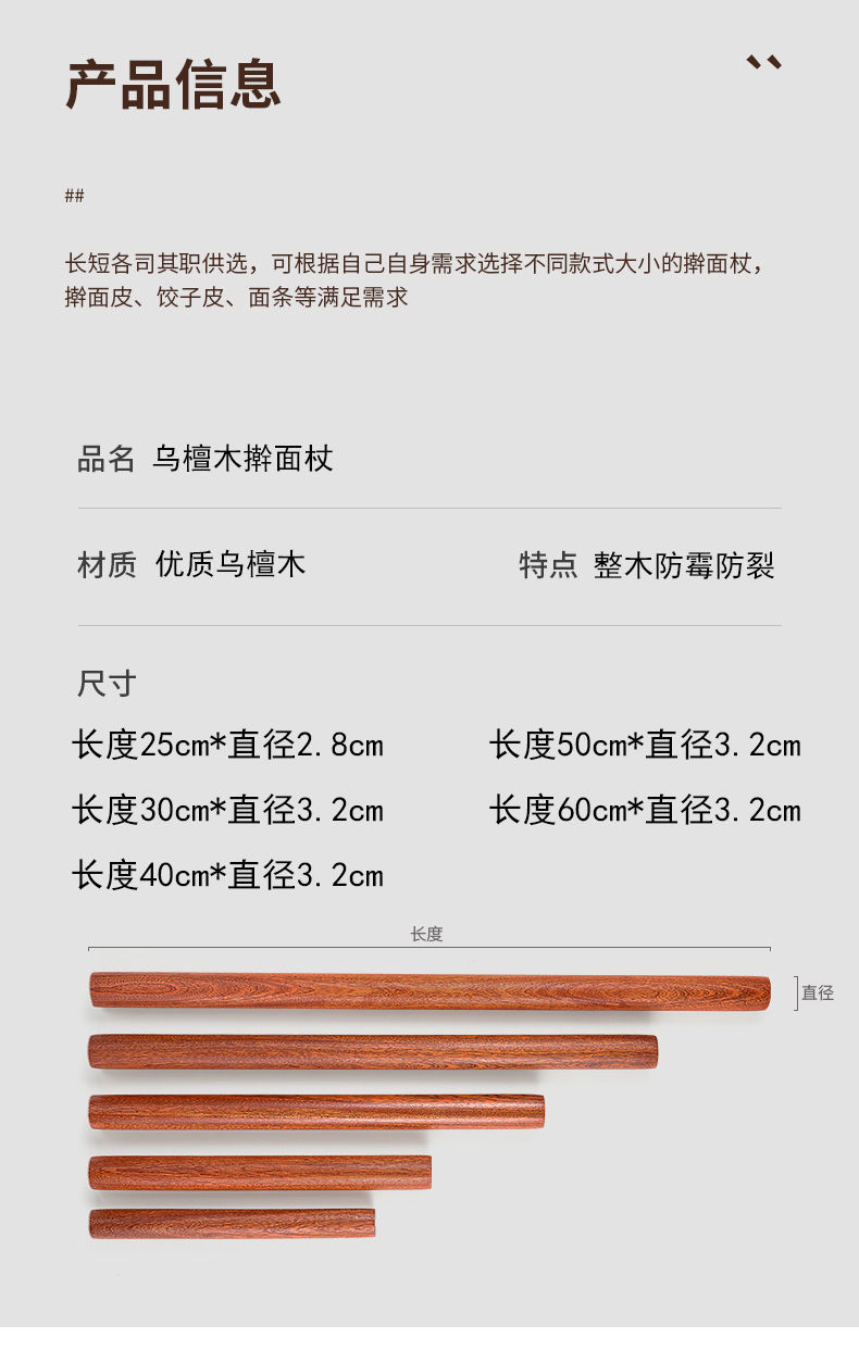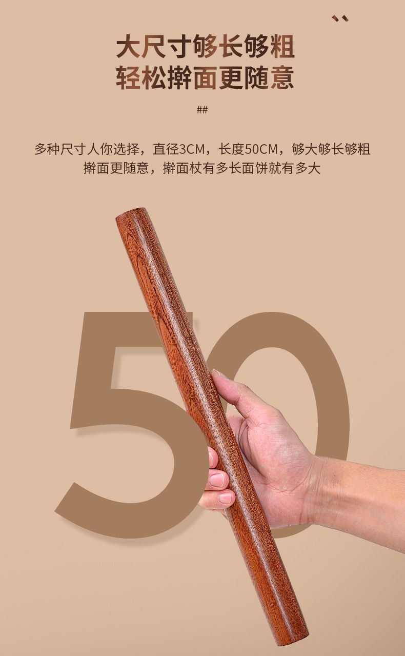 商品名稱:高檔實(shí)木搟面杖家用特大號加粗烏檀木搟面棍搟餃子皮神器廚房好物