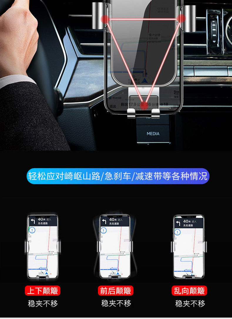 車載手機支架汽車重力感應(yīng)支撐架卡扣式多功能出風(fēng)口導(dǎo)航支架