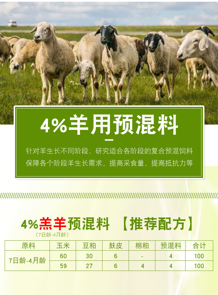 商品名稱:4%羊預(yù)混料專用料羔羊育肥羊肉羊預(yù)混料基礎(chǔ)妊娠哺乳母羊預(yù)混料
