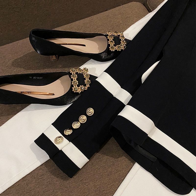 歐貨黑白撞色西裝女早秋新款高級感輕奢金屬排扣百搭小香風(fēng)外套