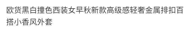 商品名稱:歐貨黑白撞色西裝女早秋新款高級感輕奢金屬排扣百搭小香風(fēng)外套