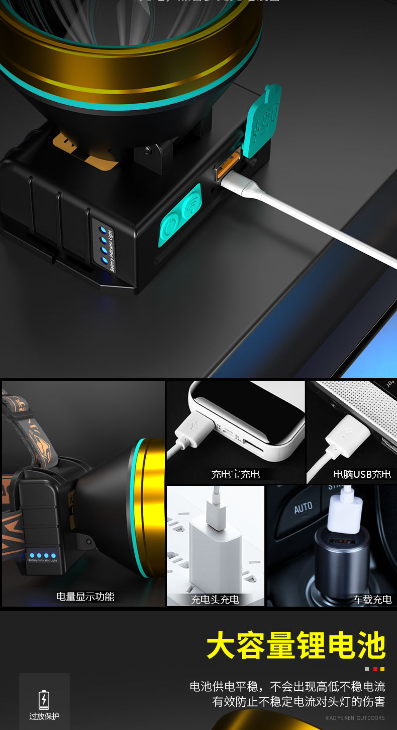 商品名稱:led頭燈強光可充電超亮防水軍家用遠射頭戴式手電筒小夜釣魚礦燈