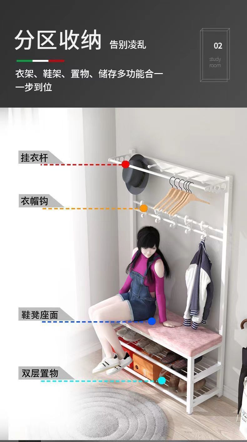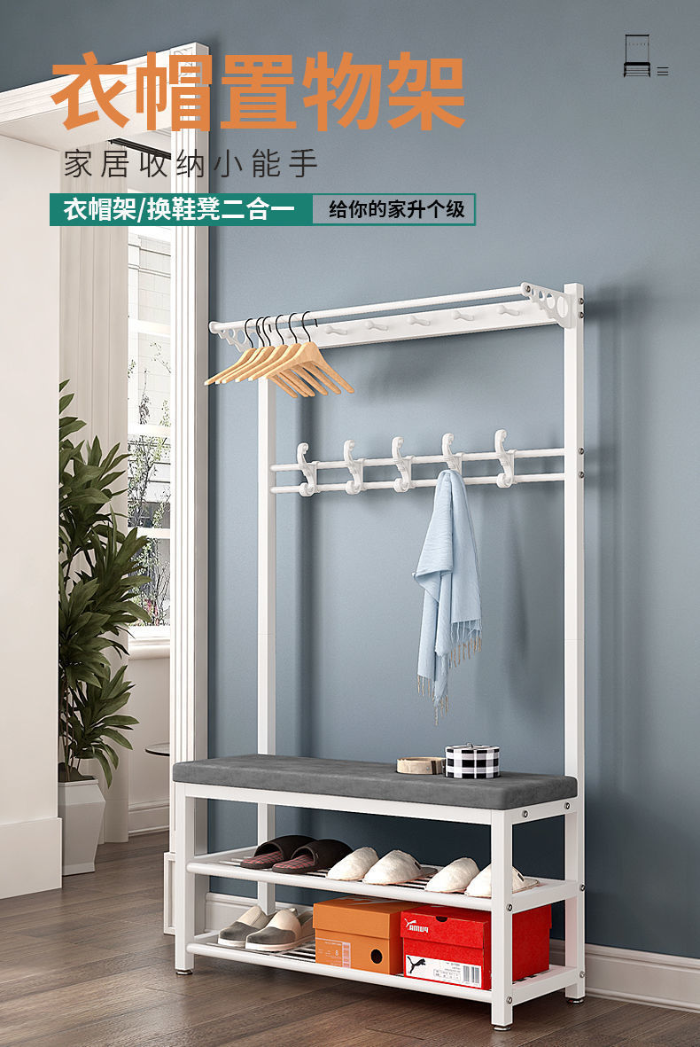 商品名稱:換鞋凳掛衣架一體鞋柜家用進(jìn)門口衣帽架小型玄關(guān)可坐軟包坐墊鞋架