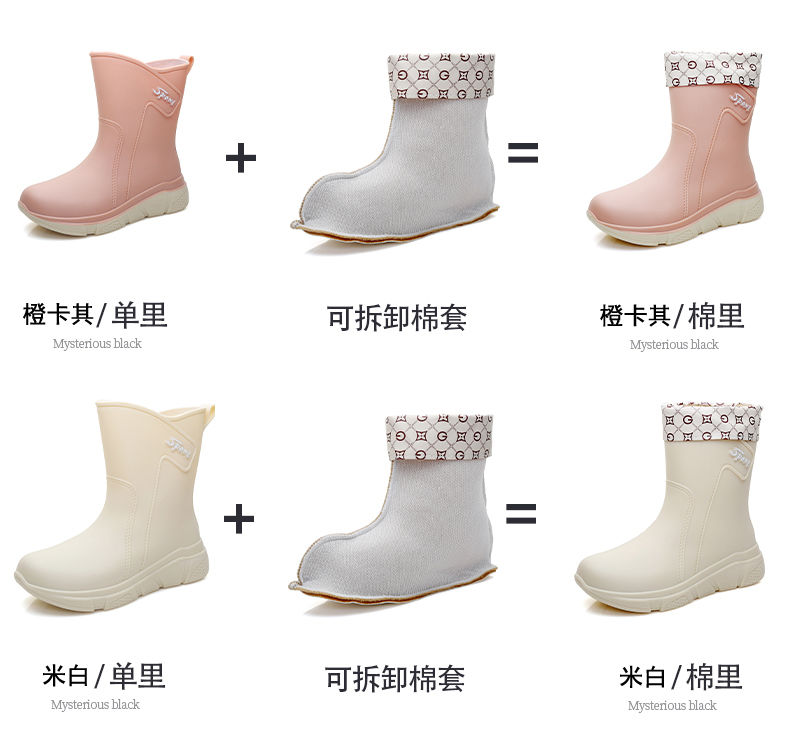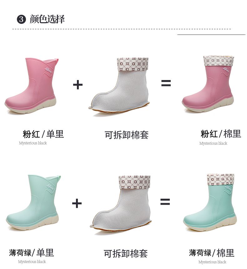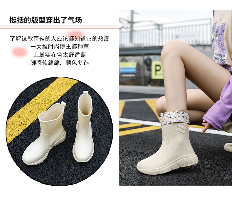 商品名稱:雨鞋女時(shí)尚款四季外穿韓版中筒防水防滑厚底水靴保暖水鞋廚房同款
