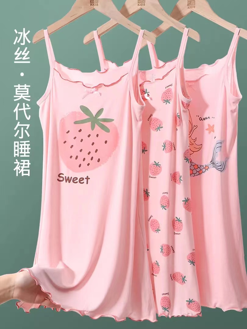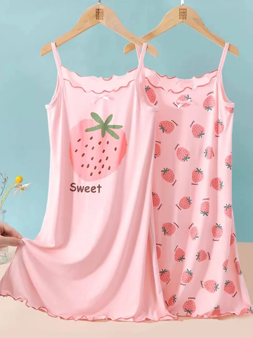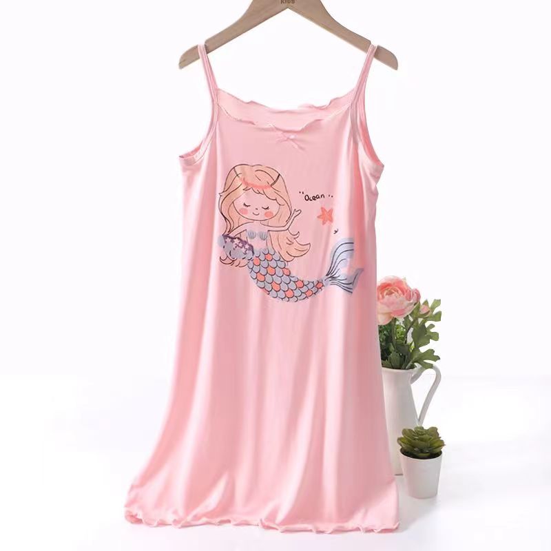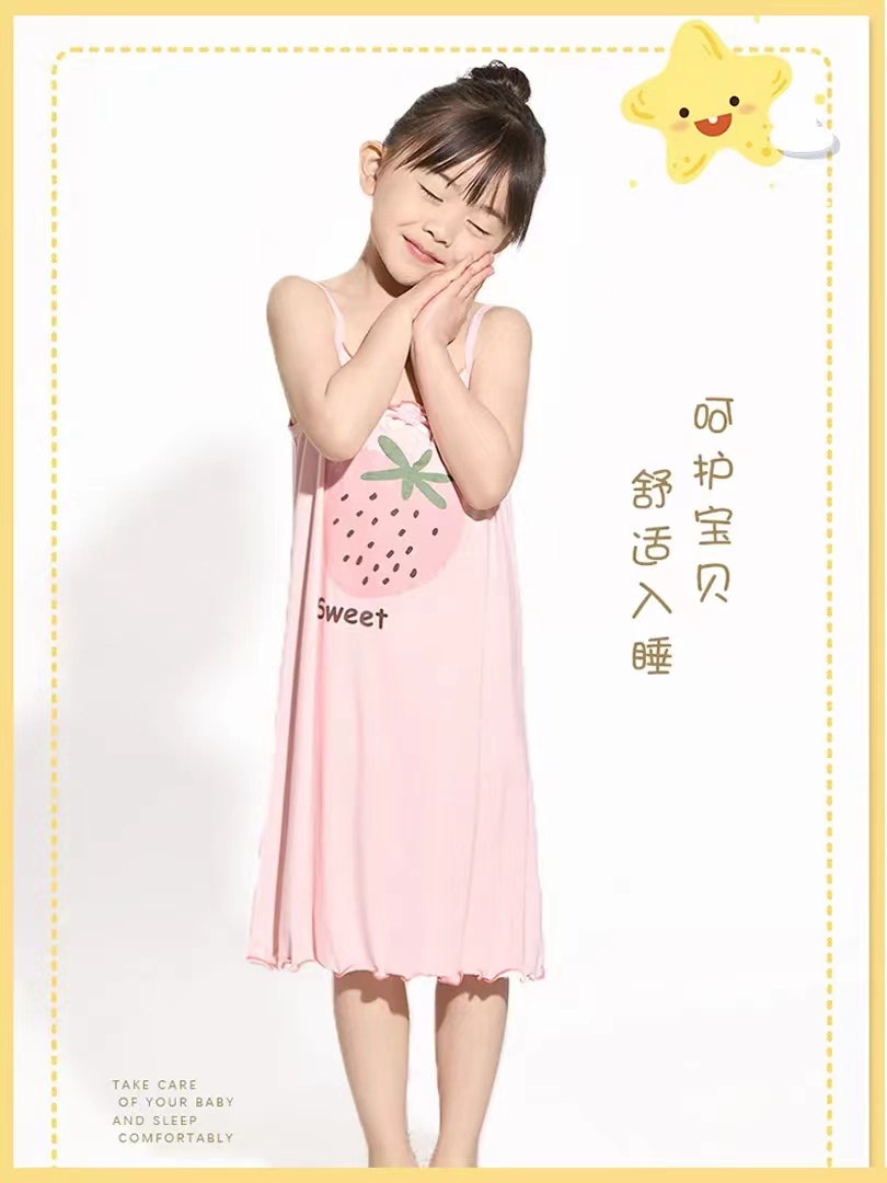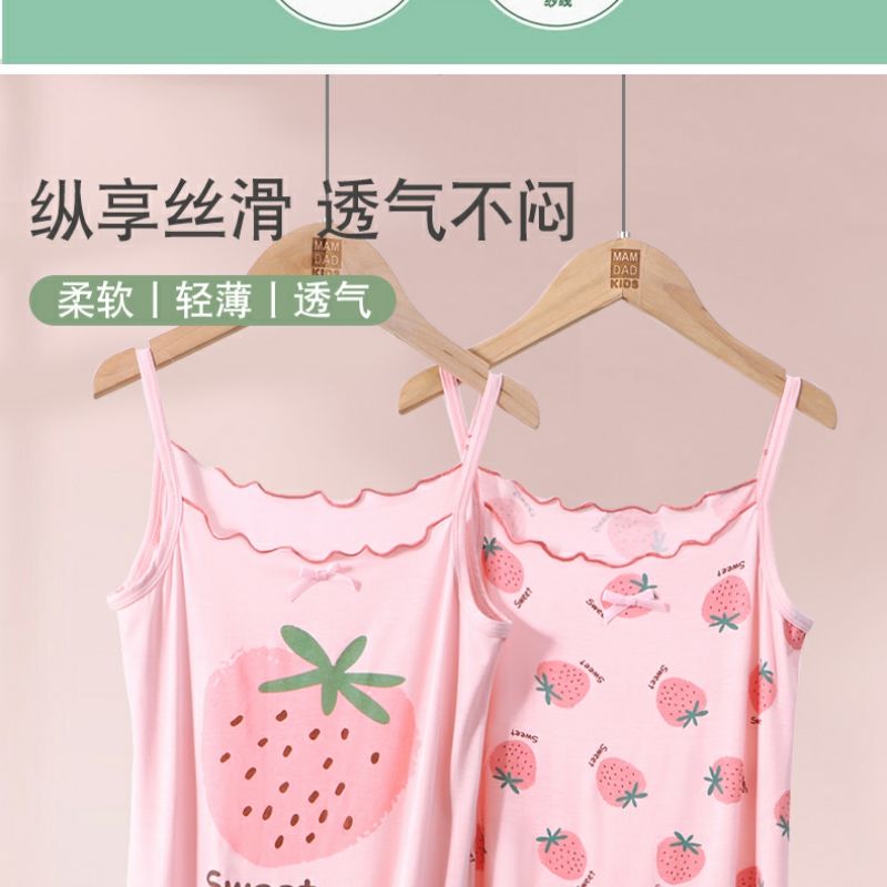 商品名稱:女童睡裙2023新款夏季莫代爾兒童吊帶睡衣薄款公主女孩冰絲無袖裙