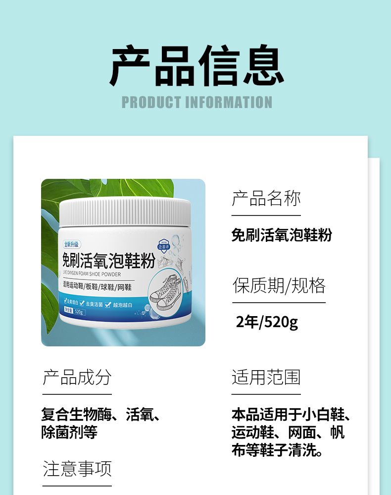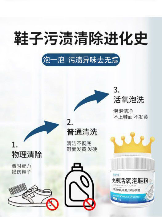 免刷活氧泡鞋粉小白鞋去黃清洗劑洗鞋刷鞋清潔去污不傷鞋去黃增白