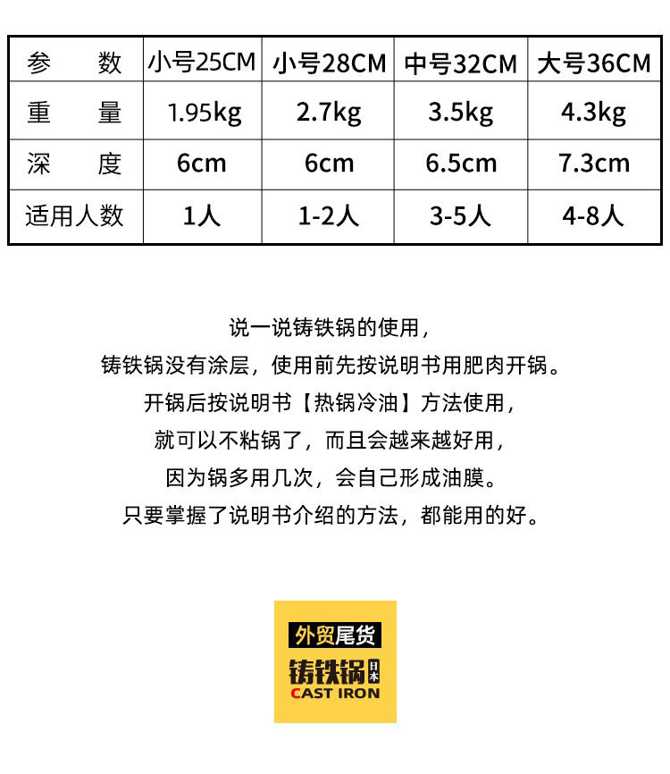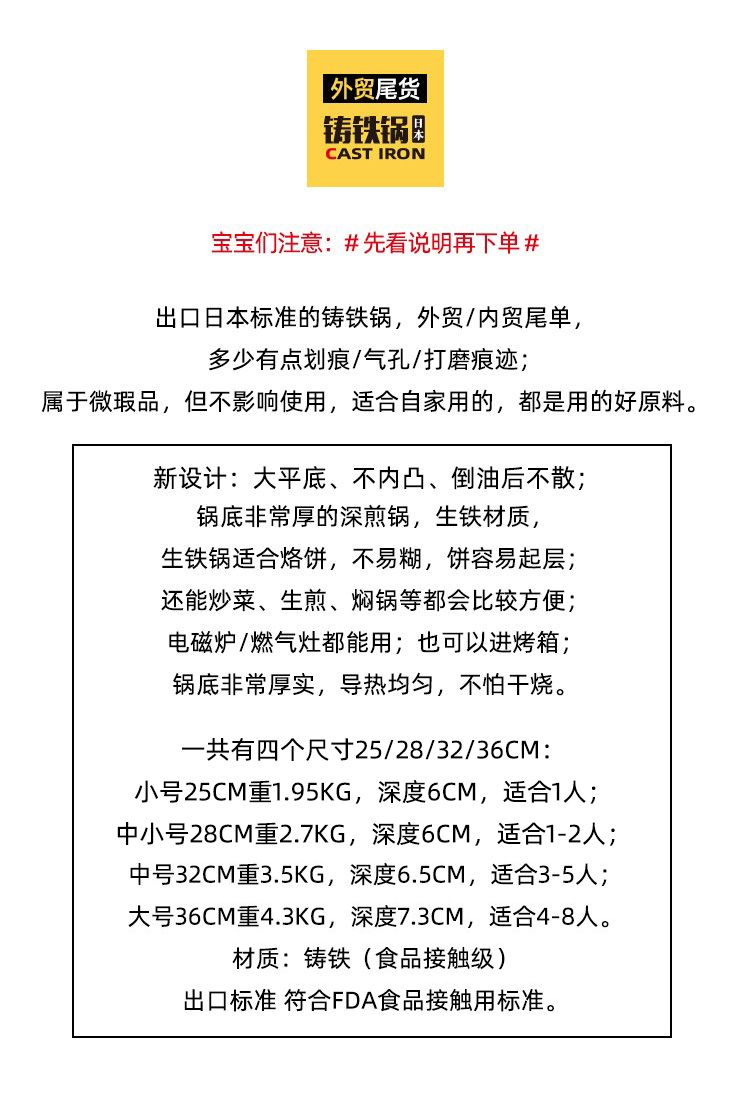 商品名稱:出口日本平底鍋 不內(nèi)凸 平底煎鍋鑄鐵鍋無涂層不粘鍋生鐵老式家用
