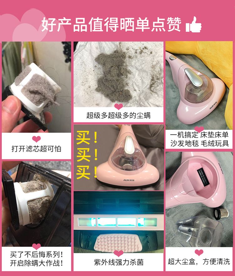 奧克斯除螨儀紫外線殺菌機(jī)家用床上去螨蟲(chóng)吸塵器床鋪除吸小型02A