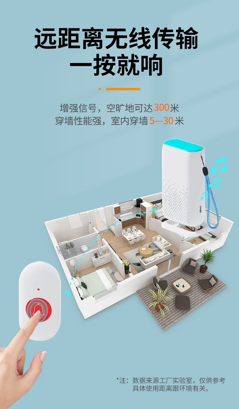 商品名稱:老人呼叫器無線家用病人門鈴遠(yuǎn)程遙控一鍵緊急報(bào)警求救平安鐘按鈴