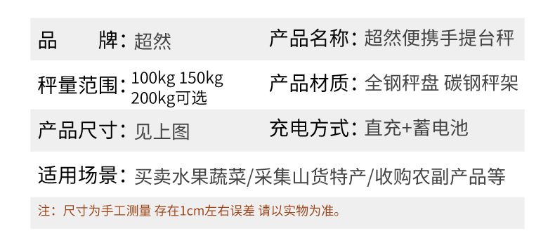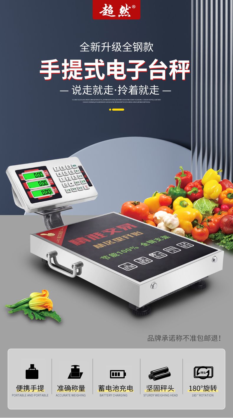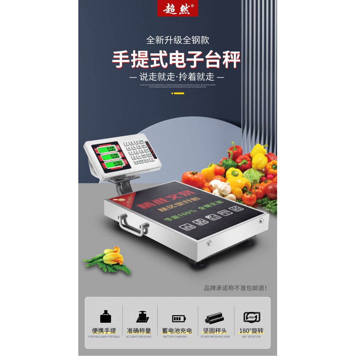 超然60kg電子秤150kg商家用臺(tái)秤精準(zhǔn)計(jì)價(jià)電子稱充電便攜手提磅秤