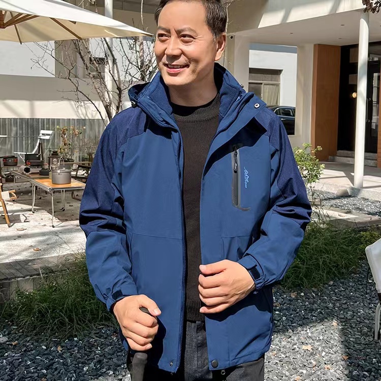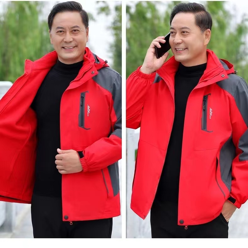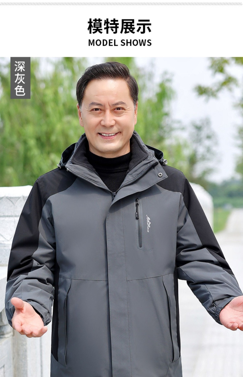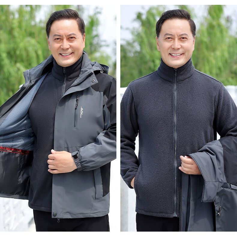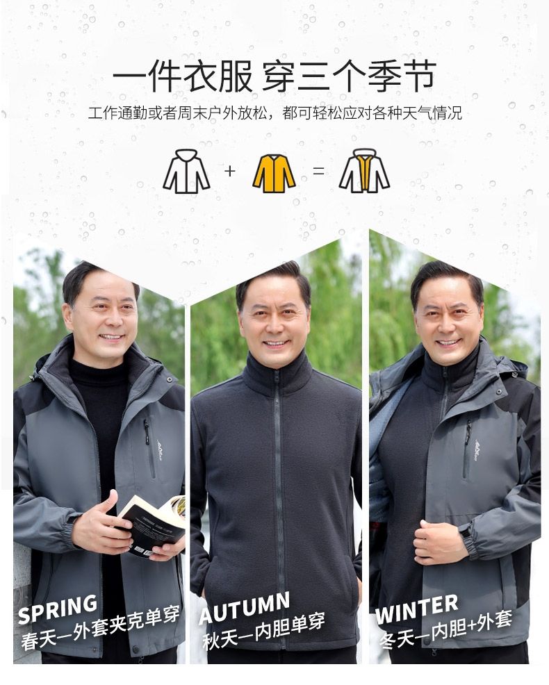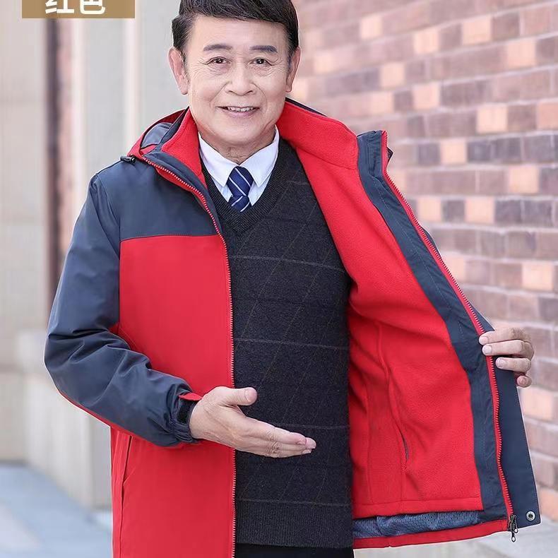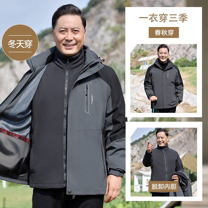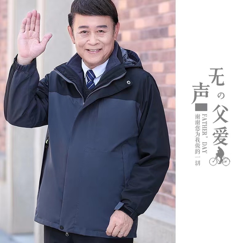 商品名稱:爸爸外套春秋季新款夾克可拆卸中老年人沖鋒衣男三合一爺爺上衣服