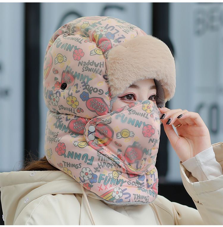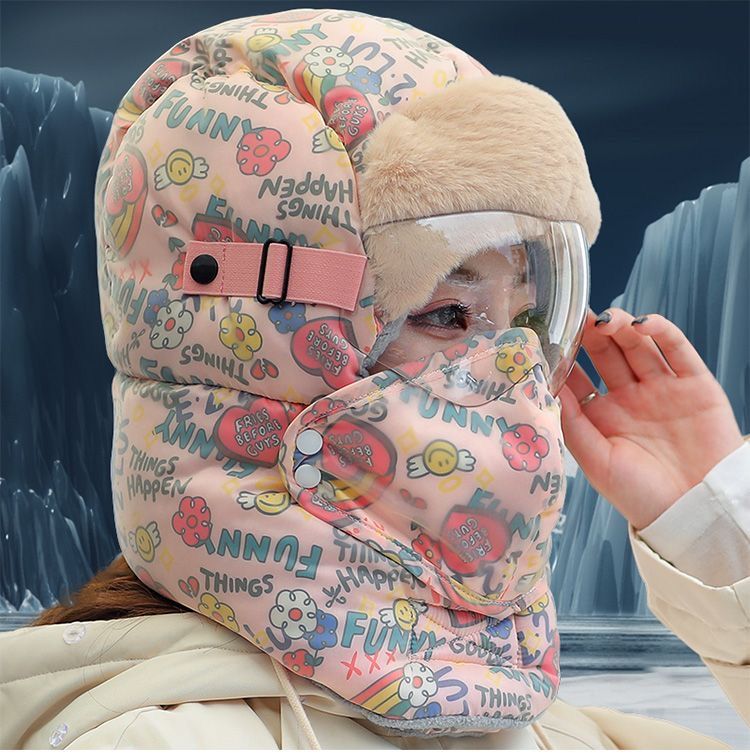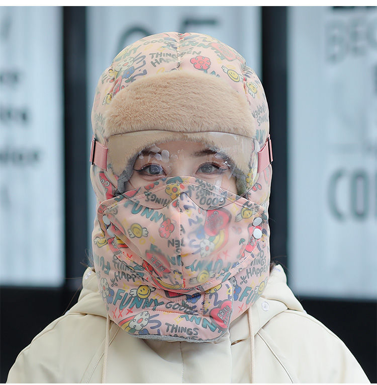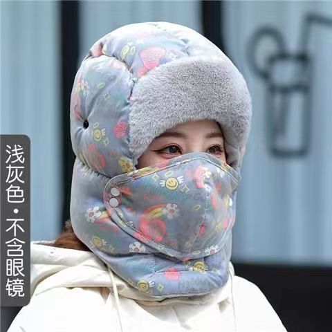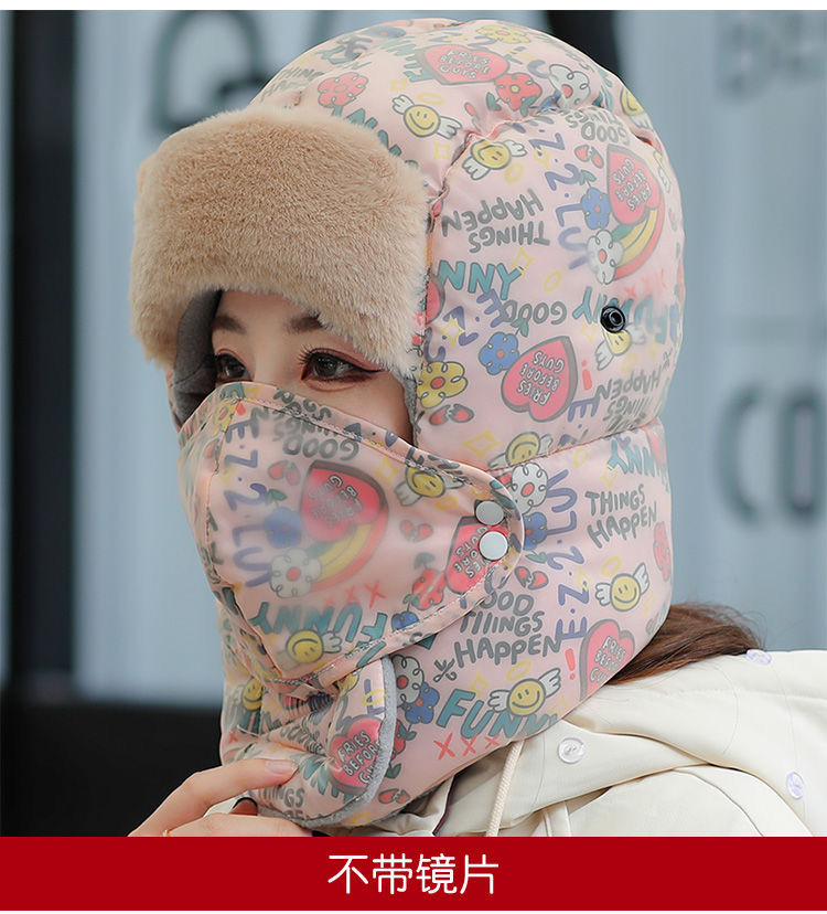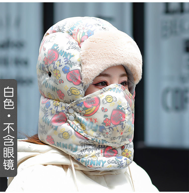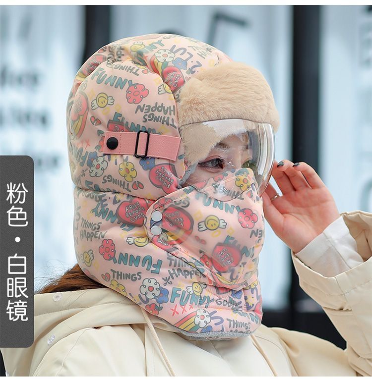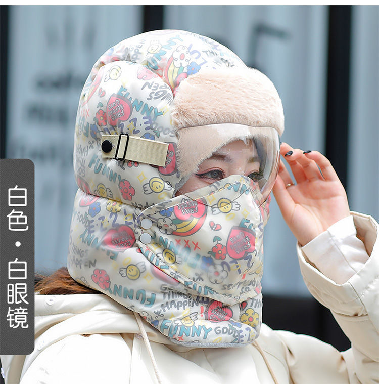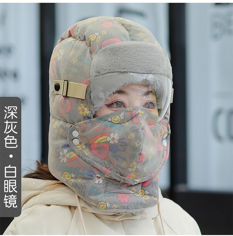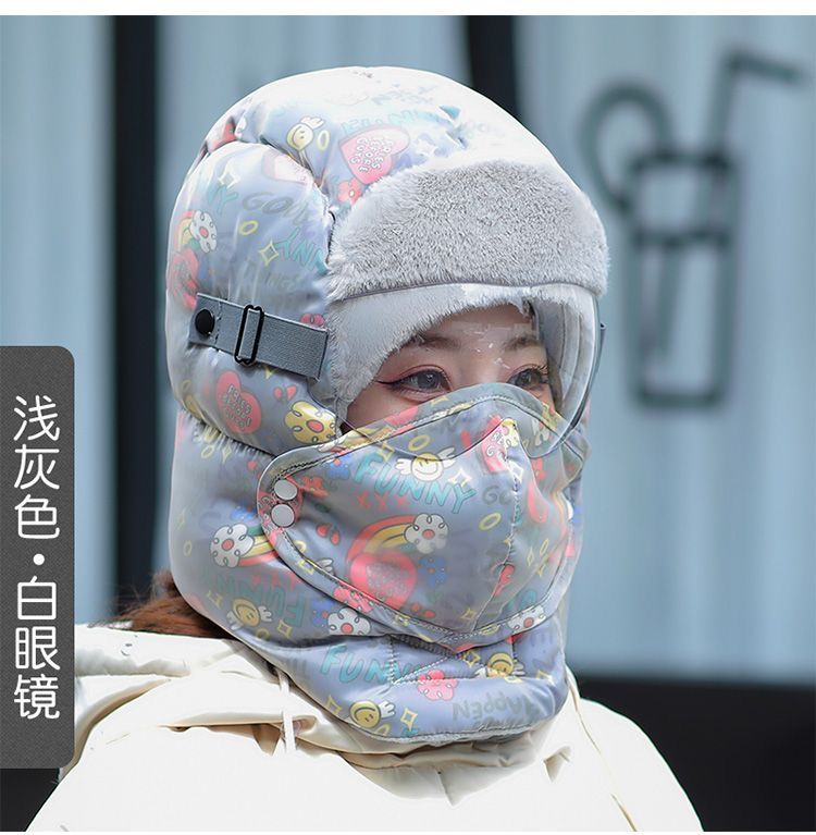 商品名稱:眼鏡帽子一體圍脖雷鋒帽女冬款騎車加絨加厚保暖防風(fēng)防寒時(shí)尚洋氣