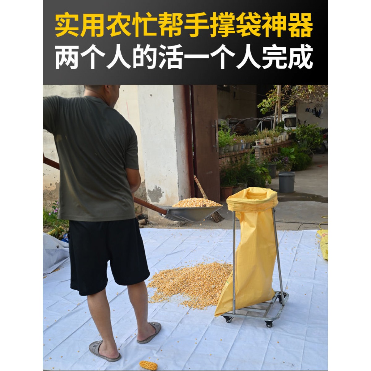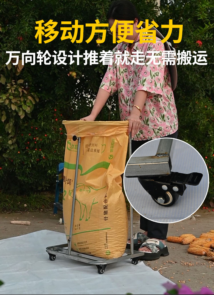 農用糧食裝袋神器曬場收谷玉米撐袋器移動打糧撐袋子帶滑輪支撐架