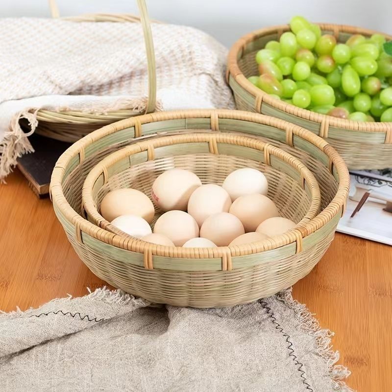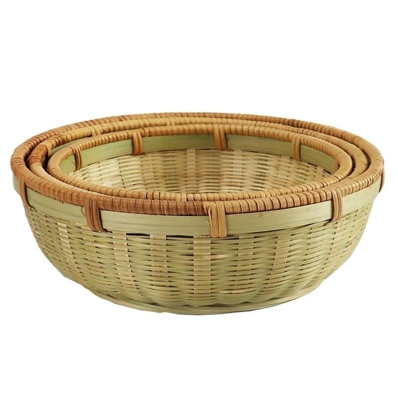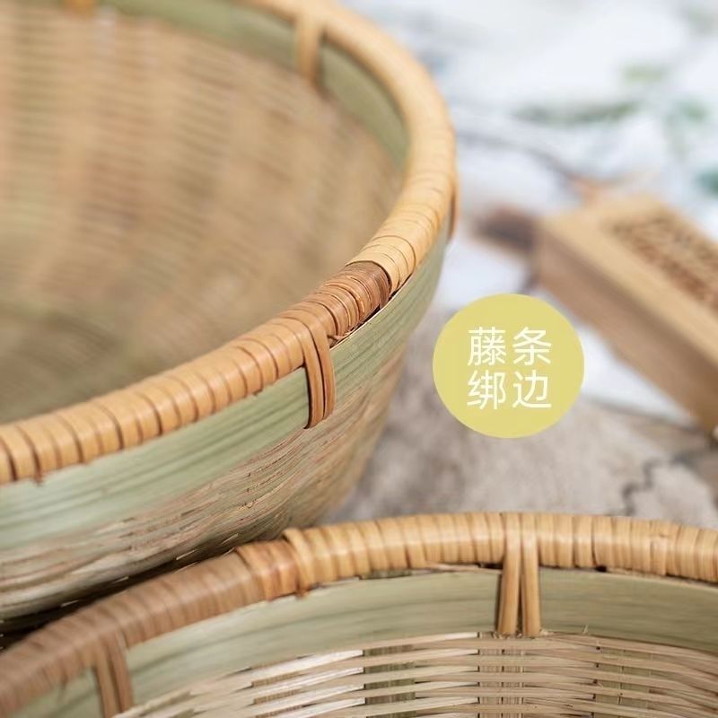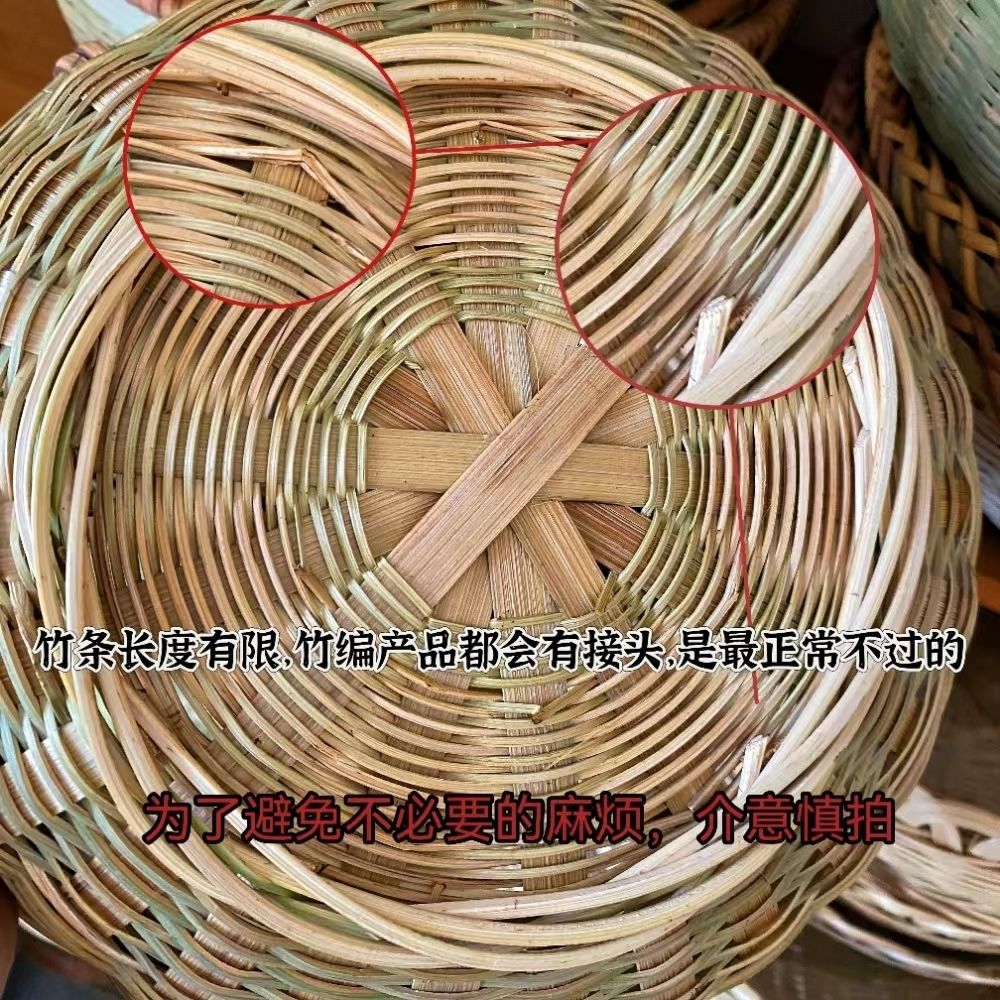 商品名稱:竹編收納筐家用圓形藤編饅頭竹筐水果籃頭層竹青編織竹制品竹籃子
