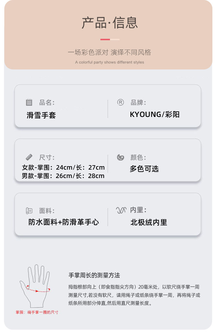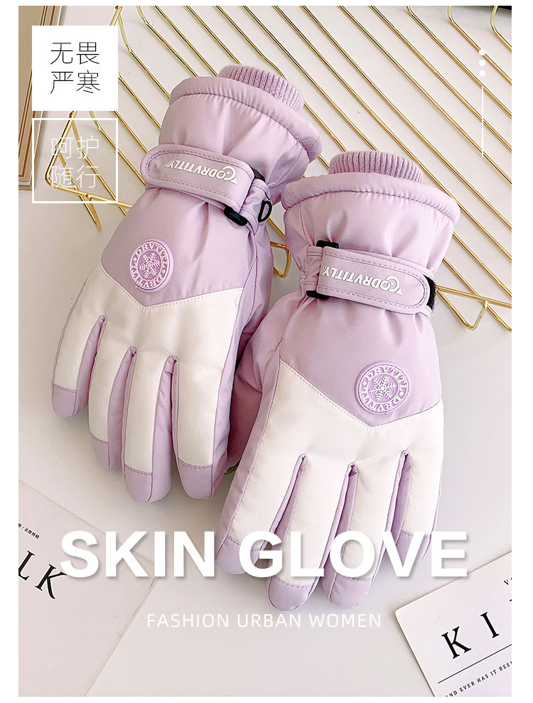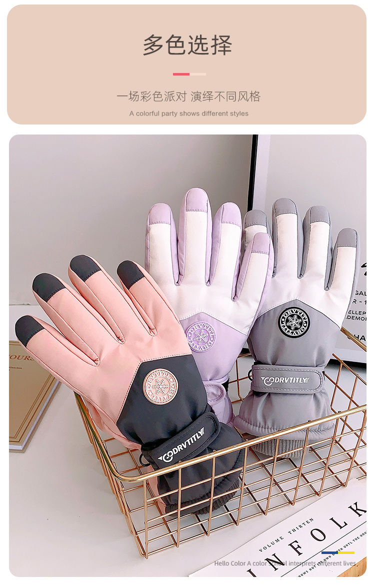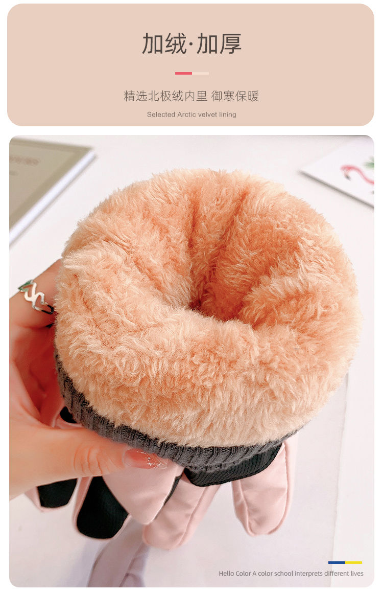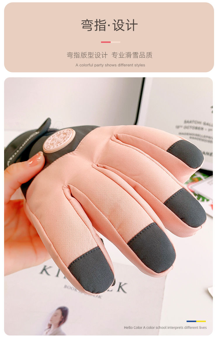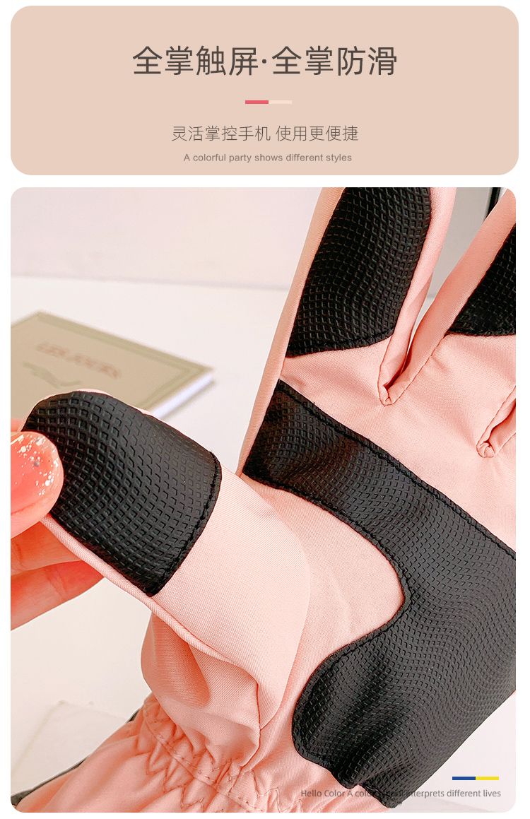 商品名稱:滑雪手套女冬季可愛加絨加厚可觸屏防水防寒保暖成人冬季騎車手套