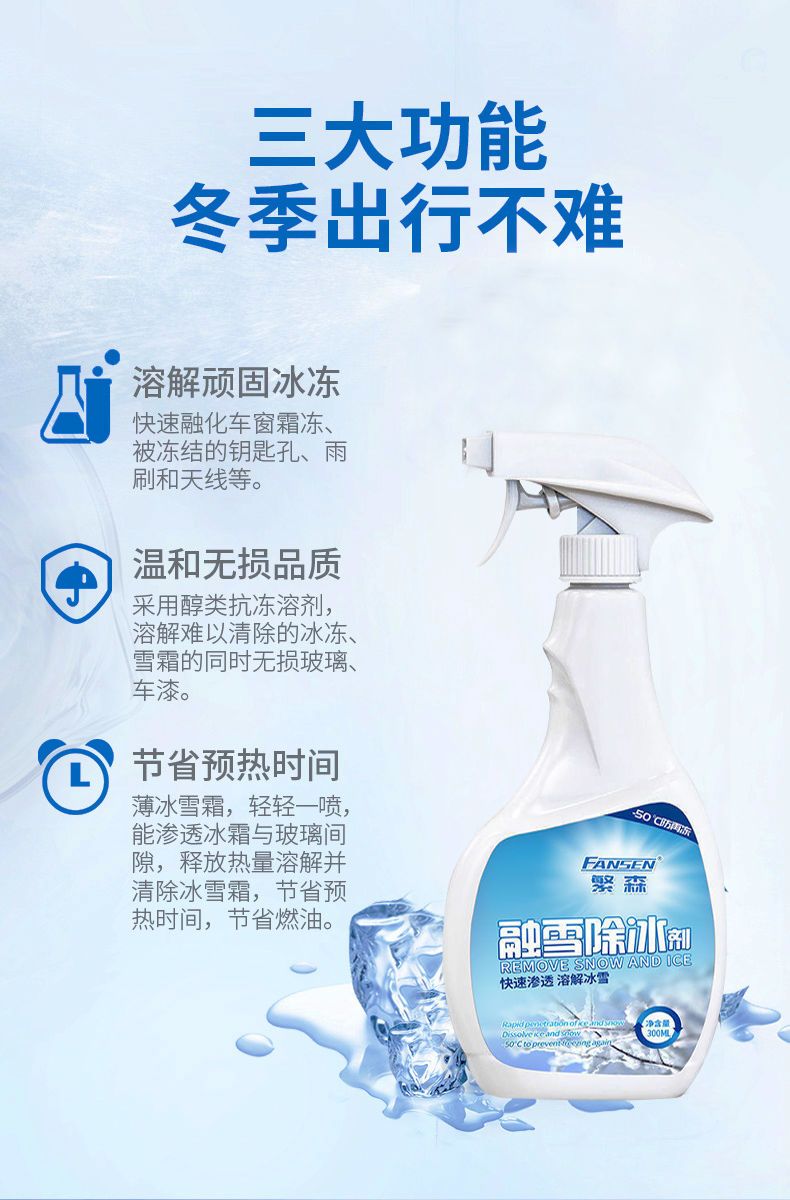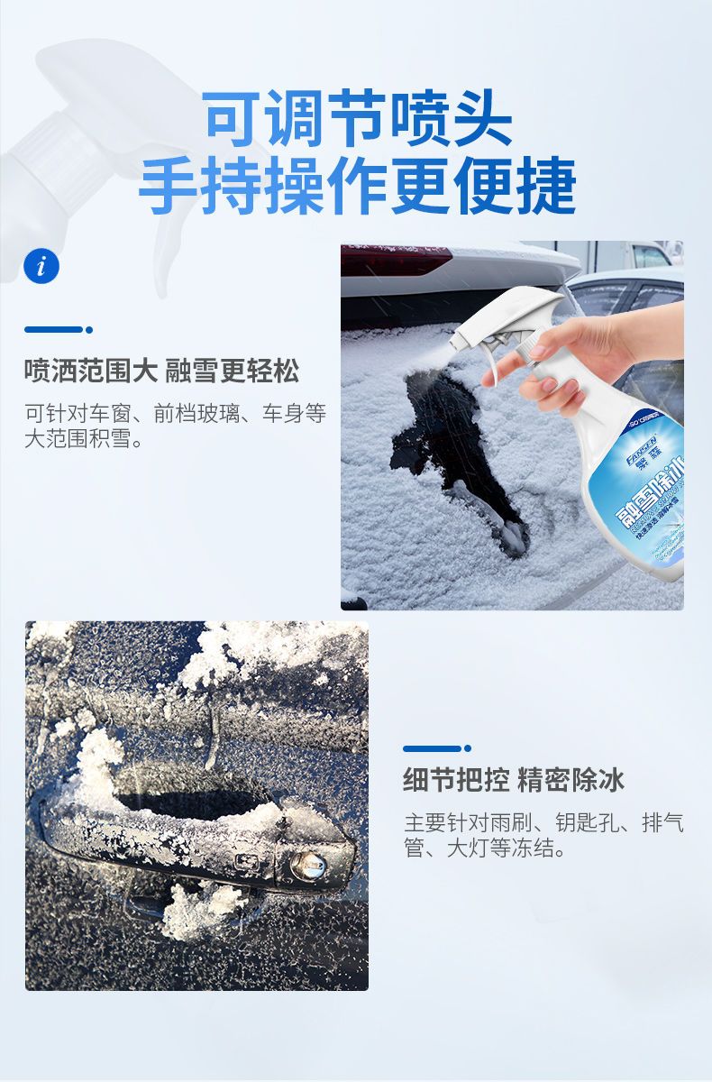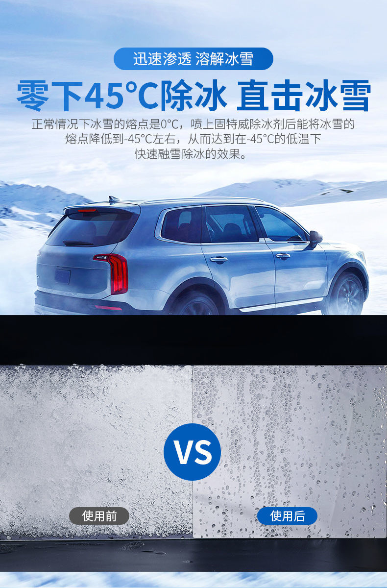 商品名稱:汽車融雪除冰劑車窗擋風玻璃化雪防結(jié)冰除霜除雪神器車用噴劑小鏟