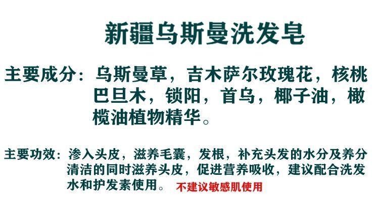 新疆烏斯曼洗發(fā)皂防脫發(fā)增發(fā)生發(fā)皂烏斯瑪草洗頭皂滋養(yǎng)發(fā)根控油黑